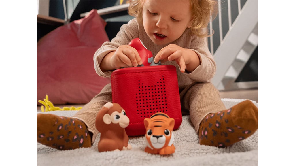 A Toniebox 2 még biztonságosabbá teszi a mesélést a babák és kisgyermekek számára. Az újratervezett készülék lekerekített sarkokat és még puhább borítást kapott, emellett megjelent az első olyan Tonies figura kollekció, amelyet kifejezetten a legkisebb hallgatók számára terveztek. Ezek a My First Tonies névre keresztelt, puha és összenyomható karakterek segítik a korai képzelőerő fejlődését valósághű hangokkal, életkornak megfelelő dalokkal és kisgyermekeknek szóló mesékkel. Az első kollekció háromféle Tonies triót tartalmaz: Farm, Utazás és Dzsungel témában.