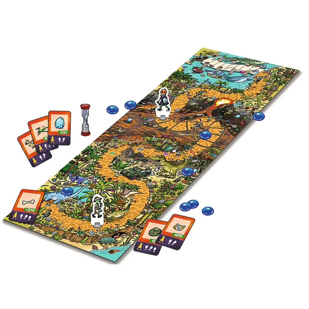 Podrobno ilustrirana igralna plošča je polna majhnih podrobnosti in skritih predmetov, ki pritegnejo pozornost otrok ter razvijajo njihovo opazovalno sposobnost, koncentracijo in hitre reakcije. Zaradi enostavnih pravil je igra priporočljiva že od 3. leta starosti, tako da se lahko tudi najmlajši zlahka vključijo v svet dinozavrov.