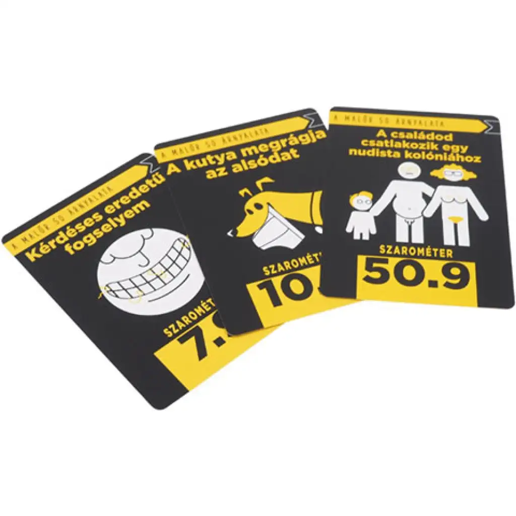 Shit Happens je vznemirljiva družabna igra, polna humorja, presenečenj in norosti, prav tako kot resnično življenje. Vsaka karta skriva grozljiv dogodek, z imenom zmešane situacije, pripadajočo sliko in lastno številko na lestvici sranja. Ali so se ti grozljivi dogodki že zgodili tebi? Ah, vseeno, če se še niso, se pripravi, da se bodo! Humoristično začinjena Shit Happens močno temelji na črnem humorju in mešanici neprijetnih situacij. Karte so ocenili strokovnjaki za duševno zdravje od 1 do 100 in jih postavili na lestvico sranja. Bodi prvi, ki bo uspel postaviti 10 kart v pravilni vrstni red in morda celo uganiti njihove točne vrednosti. Med potekom igre naj nekdo razdeli vsakemu igralcu po 3 karte, ki jih postavite v naraščajočem vrstnem redu - in že je pripravljena Vrsta nesreče! Ko je pogumni delilec že izbran, začne tudi igro. Povleci karto za igralca na tvoji desni in preberi zmešano situacijo. Vrednosti ni treba uganiti, njegova naloga bo, da jo postavi na pravo mesto v svoji Vrsti nesreče - zato mu ne preberi številke na karti. Kdo izmed vas bo najbolje uganil mučne in neprijetne situacije? Kaj je bolj neprijetno: vstopiti staršem, ko si želijo zasebnosti, ali se zakleniti iz hiše nag?
