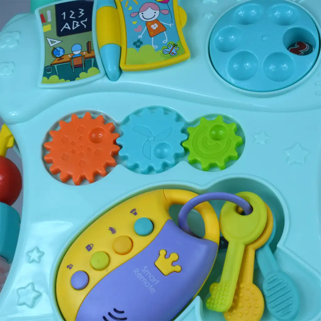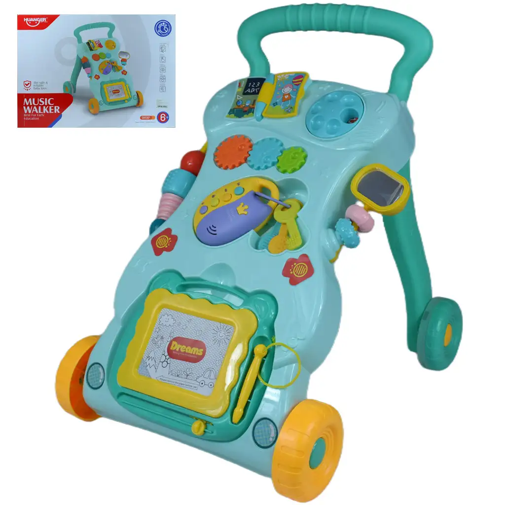 Hojica je izdelana v metino zeleni barvi, kar izdelku daje poseben in privlačen videz, ki bo zagotovo pritegnil pozornost vašega otroka. Žive barve in različne igrače prispevajo k zabavnosti hojice, tako da lahko otrok na zabaven način razvija svoje spretnosti.