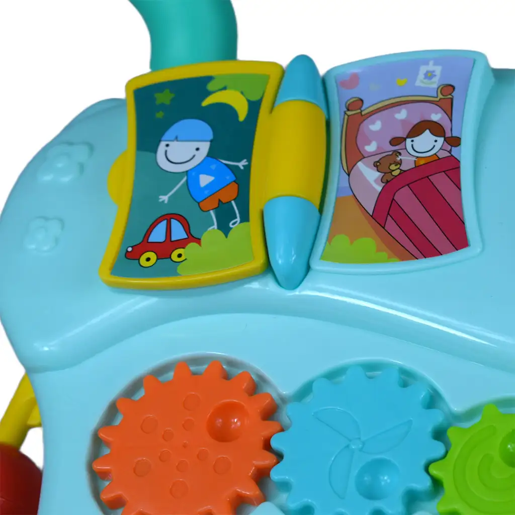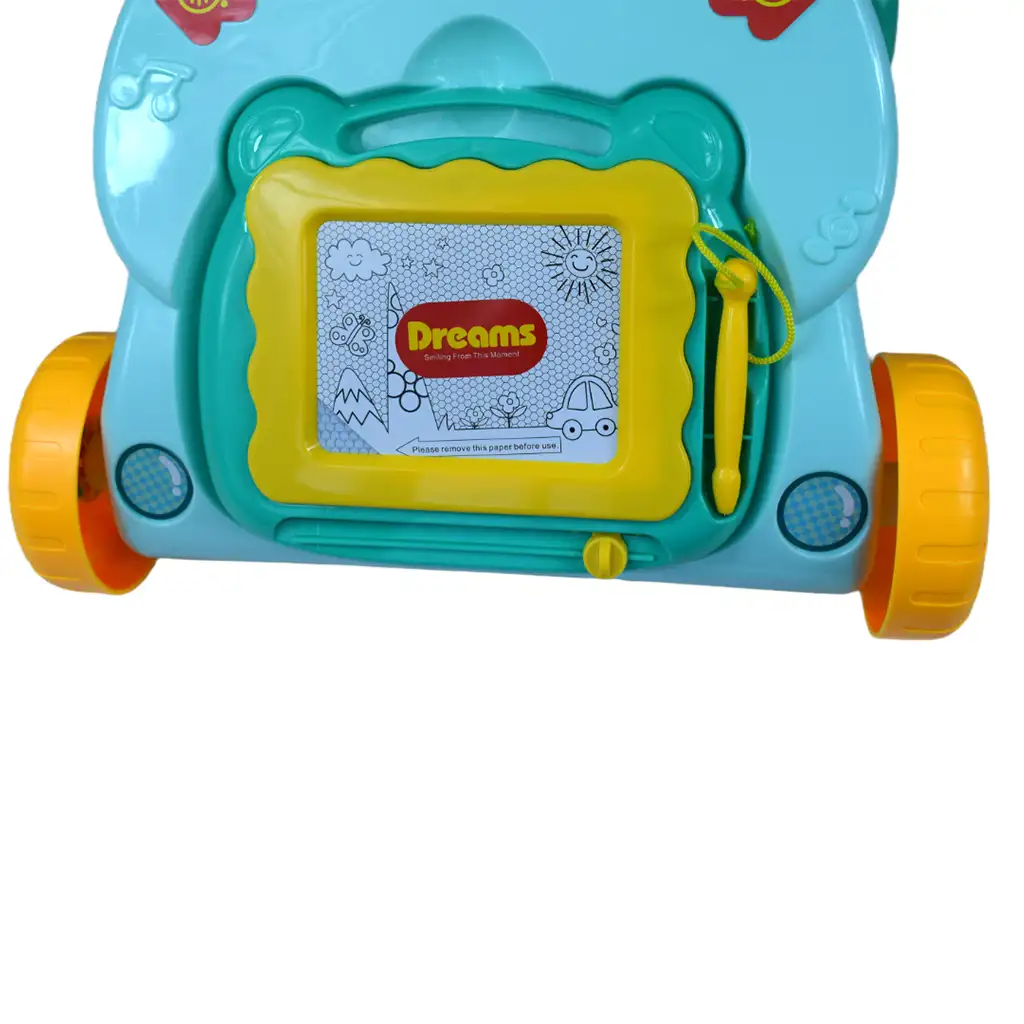 Hojica je izdelana iz kakovostnih materialov, kar zagotavlja vzdržljivost in varnost, medtem ko otroku nudi zabavne in razvojne aktivnosti. Risalna tabla pa ustvarja dodatno kreativno možnost za otroka.