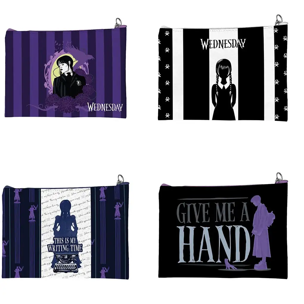 Odkrijte vznemirljivo kolekcijo stilskih toaletnih torbic, navdihnjenih s serijo "Wednesday", ki so popolna izbira za vsakodnevno uporabo ali potovanja. Te toaletne torbice s svojo posebno zasnovo niso le praktične, temveč tudi pravi modni dodatki. Vsak kos se ponaša z edinstvenim dizajnom, med katerimi najdete ikonično silhueto Wednesday Addams z različnimi ozadji, ki izžarevajo značaj, kot so vijolični cvetlični vzorci, klasične črno-bele črte, navdihujoči pisateljski motivi ali skrivnostni napis "Give Me A Hand".