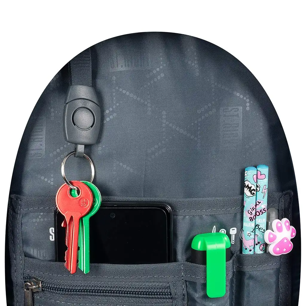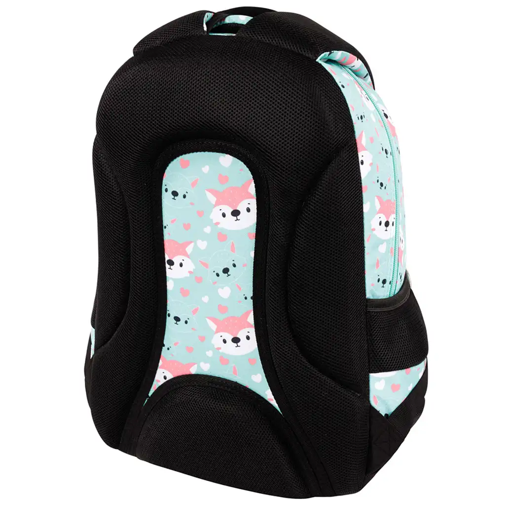 St. Right Lovely Foxy šolska torba BP26 je stilska in praktična izbira za vsakega učenca. Svetlo modra osnova z ljubkim vzorcem lisice ni le estetska, ampak tudi privlačna. Torba ima tri prostorne predelke, ki zagotavljajo veliko prostora za knjige, zvezke in druge šolske potrebščine. Poleg tega ima dva stranska, raztegljiva zunanja žepa, ki sta idealna za shranjevanje steklenic ali manjših predmetov.