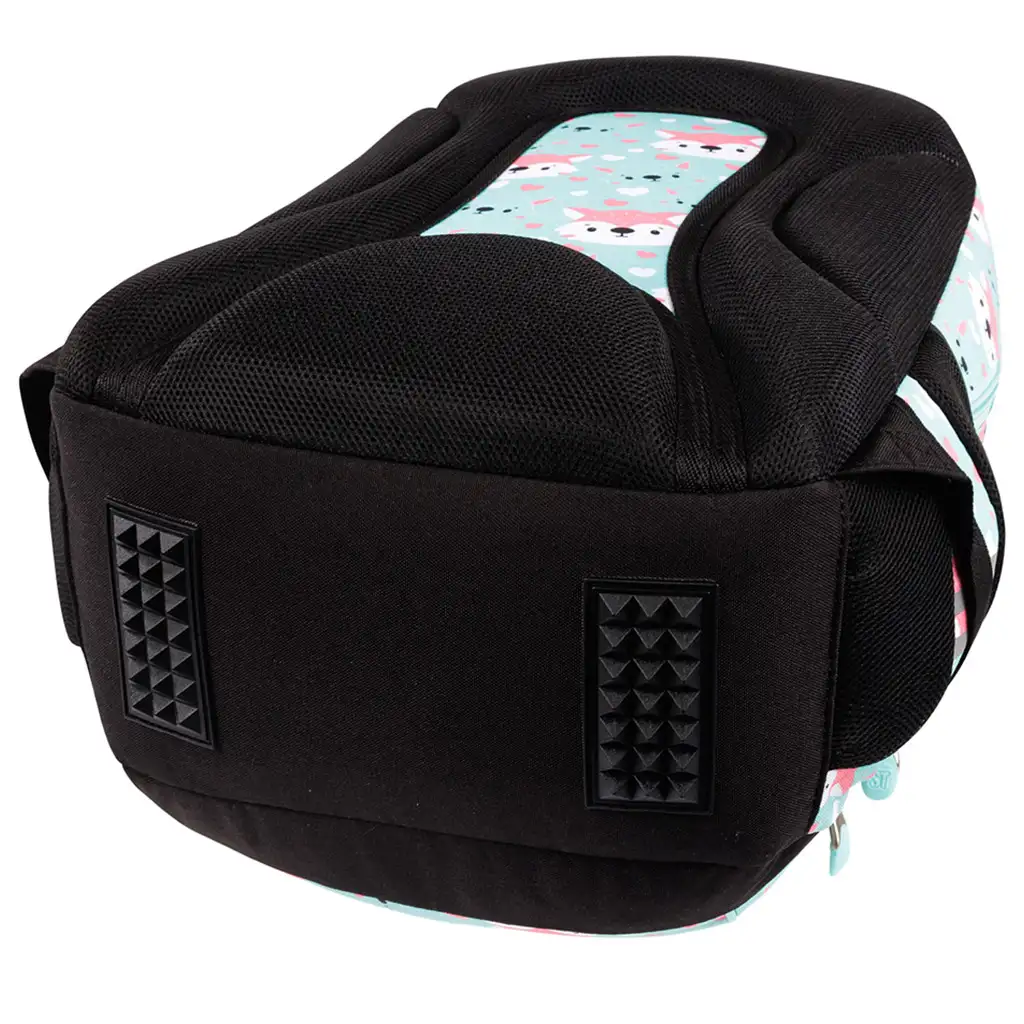 Za udobje in varnost ima St. Right Lovely Foxy šolska torba profiliran, ergonomičen in zračen hrbtni del, ki je dodatno ojačan. Mehki, nastavljivi naramni trakovi in prsni pas prispevajo k udobnemu nošenju. Ergonomsko ojačan ročaj in veliki, udobni zaključki zadrg olajšajo uporabo torbe.