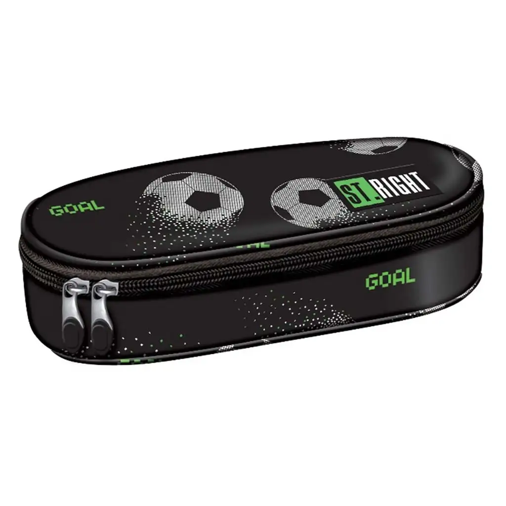Pixel Balls ovalna peresnica (23x9,5x6 cm) je prava sanjska izbira za vse male osnovnošolske nogometne navdušence. Bele nogometne žoge v pixel učinku na črni podlagi in živahni zeleni napisi “GOAL” dajejo temu praktičnemu šolskemu dodatku dinamičen, športen videz. Ta peresnica ni le stilska, temveč tudi funkcionalna, zato otrokom pomaga, da imajo vse svoje pisalne potrebščine urejene.
