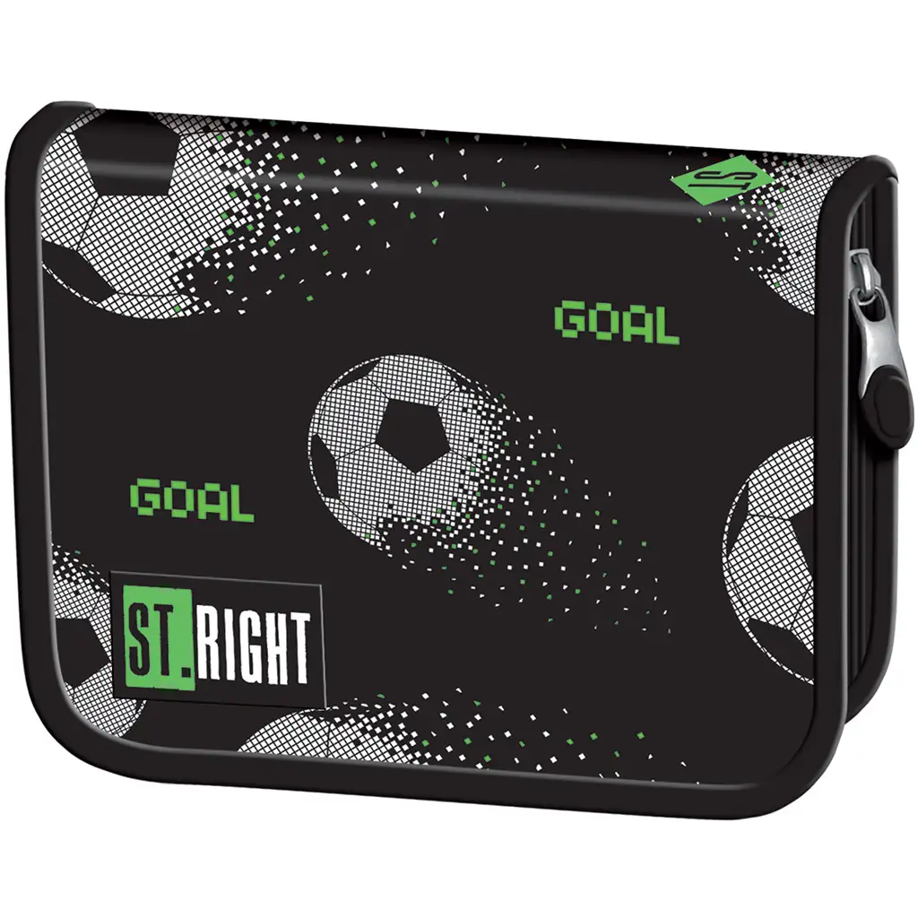 St.Right Pixel nogometne žoge – raztegljiva peresnica PC03 je res kul izbira za vsakega šolarja, ki je navdušen nad nogometom in želi, da tudi njegova šolska oprema odraža njegovo strast. Peresnica je oblikovana v sodobnem slogu – črn osnovni barvi z motivom žog v pixel učinku in zelenimi napisi „GOAL“, kar ji daje stiliziran in trendovski videz. Ta vzorec zagotovo poživi vsakdan in se odlično poda k šolskim pripomočkom otrok s športnim duhom.