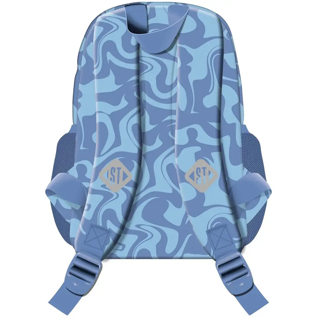 Torba s prikupnim motivom romantičnega konja daje čudovit videz, valoviti vzorec v modri in roza barvi pa ustvarja sveže, veselo vzdušje. Glavni predal torbe se zapira z zadrgo, tako da je vsebina varna, sprednji manjši žep pa je primeren za drobnarije, ključe ali robček. Stranski mrežasti žepi so popolni za shranjevanje steklenice, do katere otroci enostavno dostopajo.