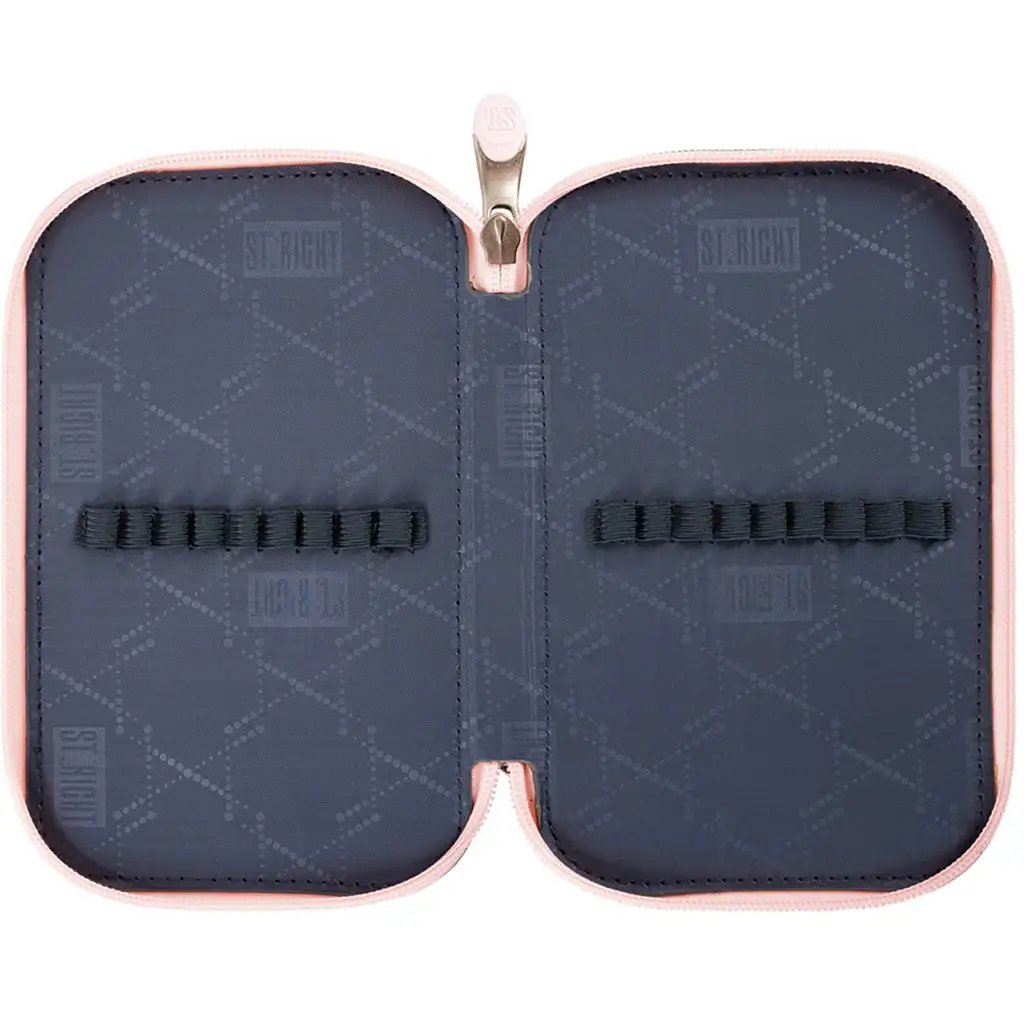 Peresnica ima tri zadrge, ki ob odpiranju omogočajo dostop do različnih velikosti in funkcij predalov. V sprednjih in zadnjih žepih je veliko prostora za svinčnike in peresa, ki so pritrjeni z elastičnimi trakovi, tako da so vedno urejeni. V srednjem žepu pa so na voljo dodatne praktične možnosti shranjevanja: tukaj lahko enostavno shranite ravnila, radirke in druge manjše pisalne potrebščine.