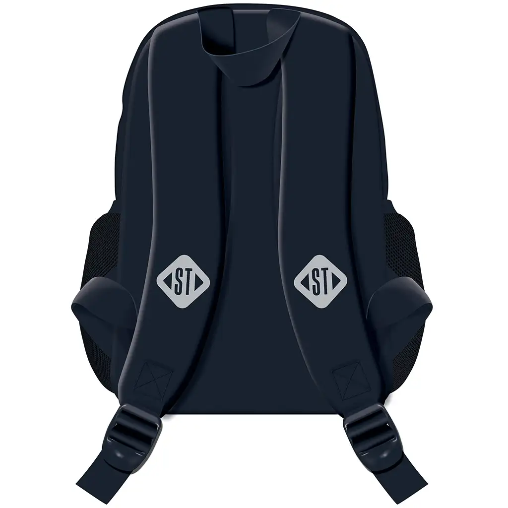 St.Right modro nahrbtnik z motivom T-Rexa BP70 je popolna izbira za vsakega mladega šolarja, ki obožuje dinozavre! Temno modro osnovo nahrbtnika krasi impresivna, modra glava T-Rexa, ki takoj pritegne pozornost in nahrbtniku daje kul videz. Svetlo modre zadrge in detajli popestrijo celoten videz, zato bo tvoj otrok z veseljem nosil ta trendovski nahrbtnik vsak dan v šolo.