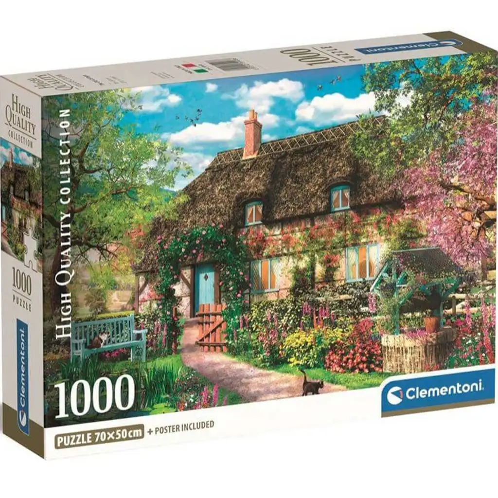 "Stara hišica" High Quality Collection 1000-delni Compact puzzle od Clementoni predstavlja mirno, podeželsko življenje, polno cvetočih vrtov in atmosferske stare arhitekture. Ta večji sestavljanka je popolna izbira za tiste, ki hrepenijo po daljši, poglobljeni puzzle izkušnji. Podrobna in barvita slika predstavlja prijeten izziv in odličen način za sproščujoče preživljanje prostega časa. Med sestavljanjem puzzle lahko uživate v lepoti narave, hkrati pa razvijate svoje sposobnosti reševanja problemov in koncentracijo. Priložen plakat pomaga, da je proces sestavljanja tekoč in se zaključi z lepim rezultatom.