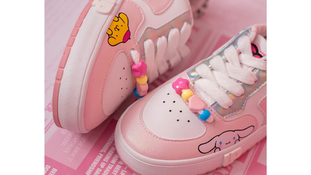 Vstopi v svet Sanrio s športnimi copati, ki jih navdihujejo Hello Kitty in njeni prijatelji! Na vsakem bleščeče rožnatem copatu najdeš vesele grafike Hello Kitty, Kuromi, My Melody, Cinnamoroll in Pompompurin, tako da lahko oboževalci okrasijo svoje korake s svojimi najljubšimi liki. Copati so še bolj edinstveni zaradi posebnih dodatkov, kot so zapestnice prijateljstva, okraski za vezalke in številni detajli, ki jih je navdihnil Sanrio. Ti copati niso le stilski, ampak tudi igrivi in veseli – popolna izbira za vsakega oboževalca Sanrio!