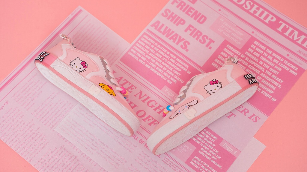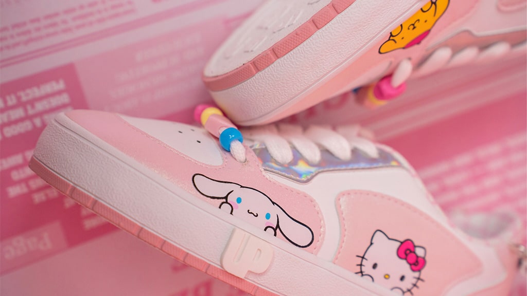 Otroške čevlje zdaj vstopajo v vesolje Sanrio z najnovejšo kolekcijo čevljev znamke Ground Up. Ti športni čevlji, ki jih navdihujejo Hello Kitty in njeni prijatelji, so na voljo izključno v trgovinah Kids Foot Locker in so popolna izbira za vse, ki obožujejo slog Sanrio.