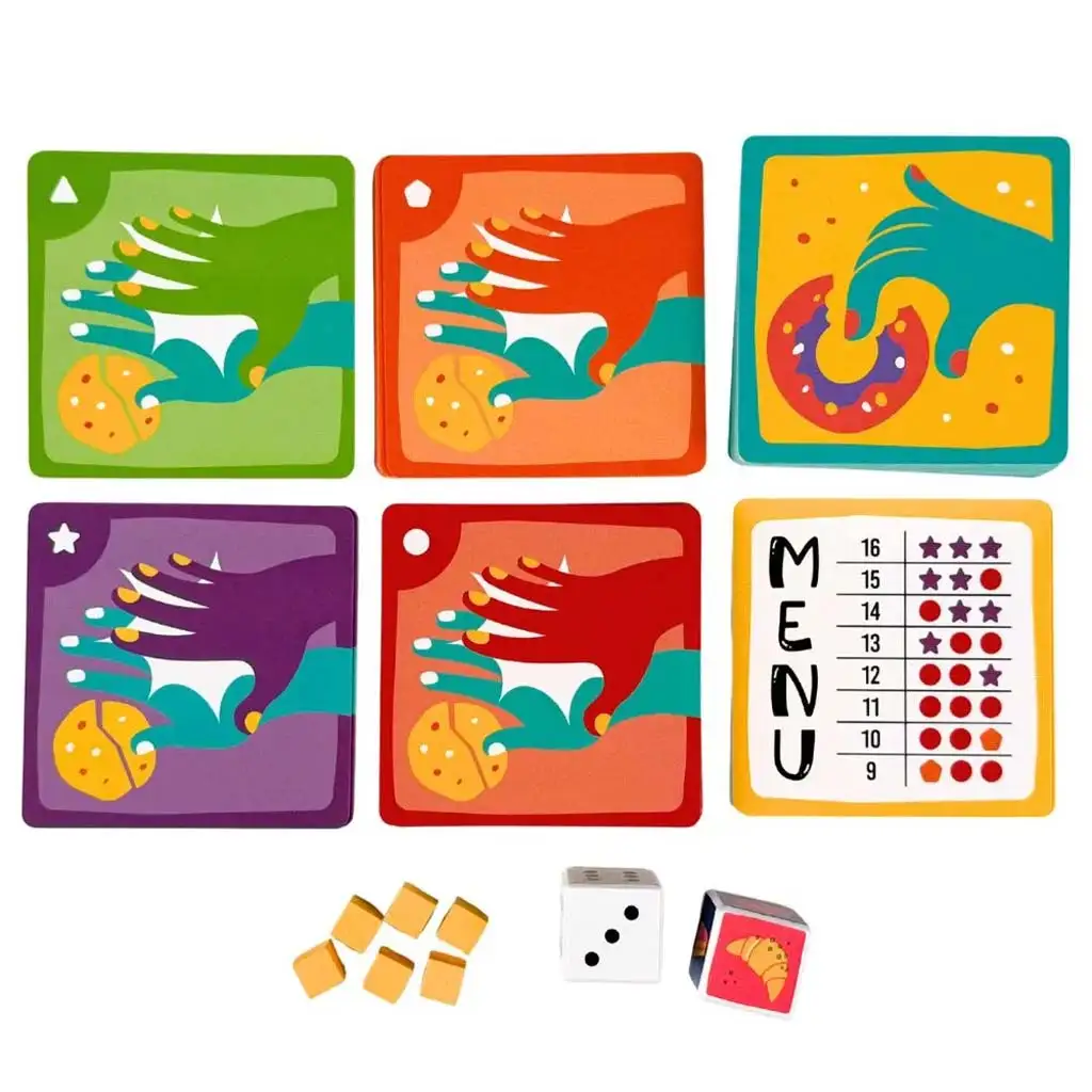 El s piškoti! je resnično dinamična in zabavna družabna igra za hitre reflekse, ki zagotovo popestri družinske ali prijateljske večere ob igrah. Po zgodbi opojna aroma sveže pečenega peciva privablja vse v pekarno, vendar je zmagovalec lahko le tisti, ki je najhitrejši in ima najostrejše oko. Med igro dve kocki določata, na katero karto je treba udariti, a naloga je vse prej kot enostavna. Ko igra napreduje, vstopa v veljavo vedno več pravil in omejitev, ki zahtevajo nenehno pozornost in hitre odločitve. Včasih je pomembna barva piškota, drugič oblika ali celo to, katere karte se ne smejo dotakniti. Zahvaljujoč prilagodljivi težavnosti lahko v igri uživajo tako mlajši kot starejši, zaradi česar ponuja razburljiv izziv za vse starostne skupine. Če želiš, da se tvoj otrok med igro izboljša v reakcijskem času in koncentraciji, je ta igra prava izbira.