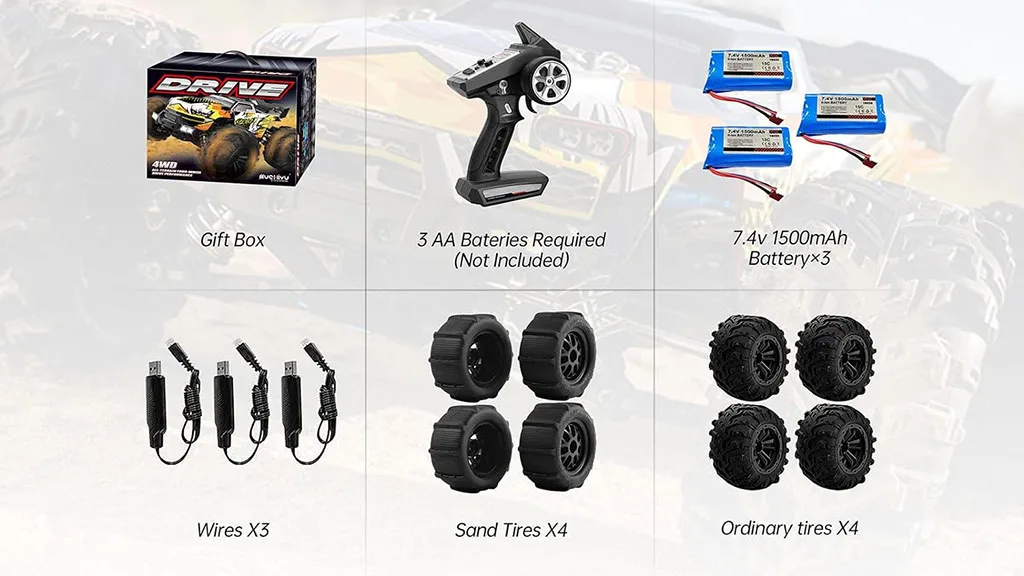 To je tovornjak R/C v merilu 1:16 z vsem kolesnim pogonom, zasnovan tako, da se z lahkoto spopade z grobim terenom in je sposoben drsenja, vrtenja in skakanja. Brezkrtačni motor ga pospeši do najvišje hitrosti 47 mph. Ima sprožilni krmilnik 2,4 GHz in prihaja s pnevmatikami za pesek, ki se lahko uporabljajo tudi na snegu. Priložene so tri baterije in trije polnilniki, kar omogoča, da tovornjak deluje do ene ure (20 minut na baterijo). Med dodatki najdemo miniaturni izvijač, ključ za vijake in dodatne dele.