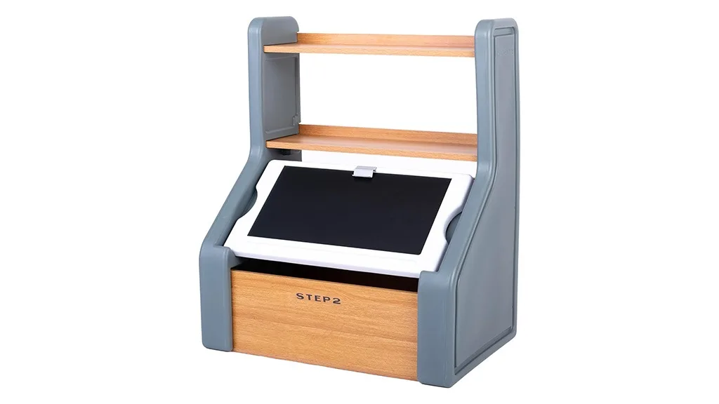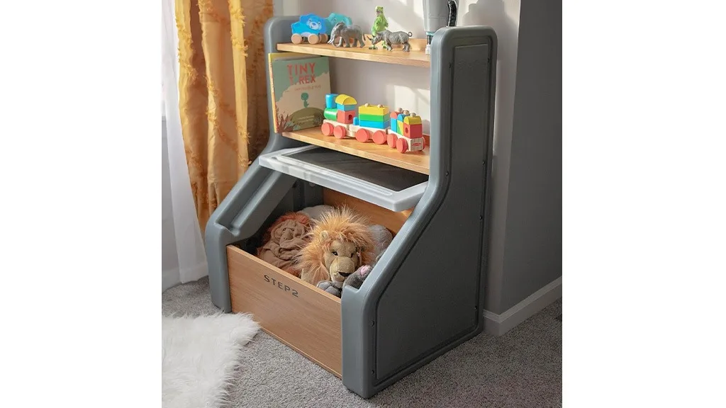 V Združenih državah Amerike izdelana igrača za shranjevanje iz mešanice lesa in plastičnih delov ima prostorno spodnjo pregrado, dve polici in dodatne možnosti shranjevanja, ki so popolne za organizacijo igralnice, spalnice ali dnevne sobe. Shranjevalnik ponuja 4,2 kubičnega metra prostora za shranjevanje in ima snemljiv pokrov, ki služi tudi kot tabla za kredo, opremljena s sponko za papir, da lahko na njej prikazujete ali ustvarjate umetniška dela. Njegova osnova je izjemno stabilna in vsi vogali so zaobljeni za večjo varnost in mir staršev. Na voljo je v treh barvnih različicah, vključno z žajbljevo sivo, belo in rožnato.