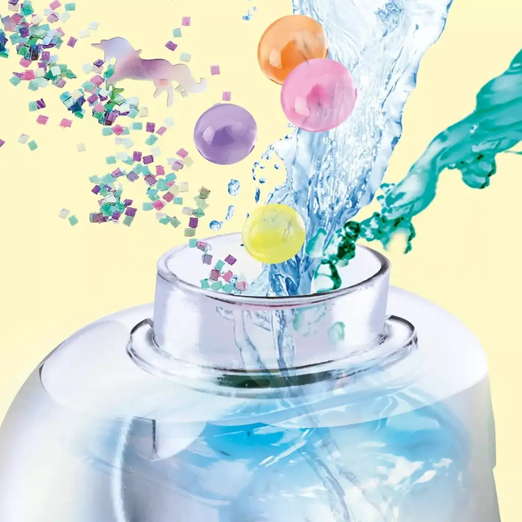 Komplet vsebuje vse potrebne sestavine: kroglice, konfete, barvne dekorativne elemente, nalepke in posebno tekočino, s katero lahko oživite čarobno gibanje lave svetilke. Otroci lahko sami dodajajo dekorativne elemente v prozorno svetilko v obliki samoroga in mešajo tekočino – tako bo vsaka lava svetilka popolnoma edinstvena. Končana svetilka tudi sveti, zato ponoči daje čudovito ambientalno svetlobo sobi.
