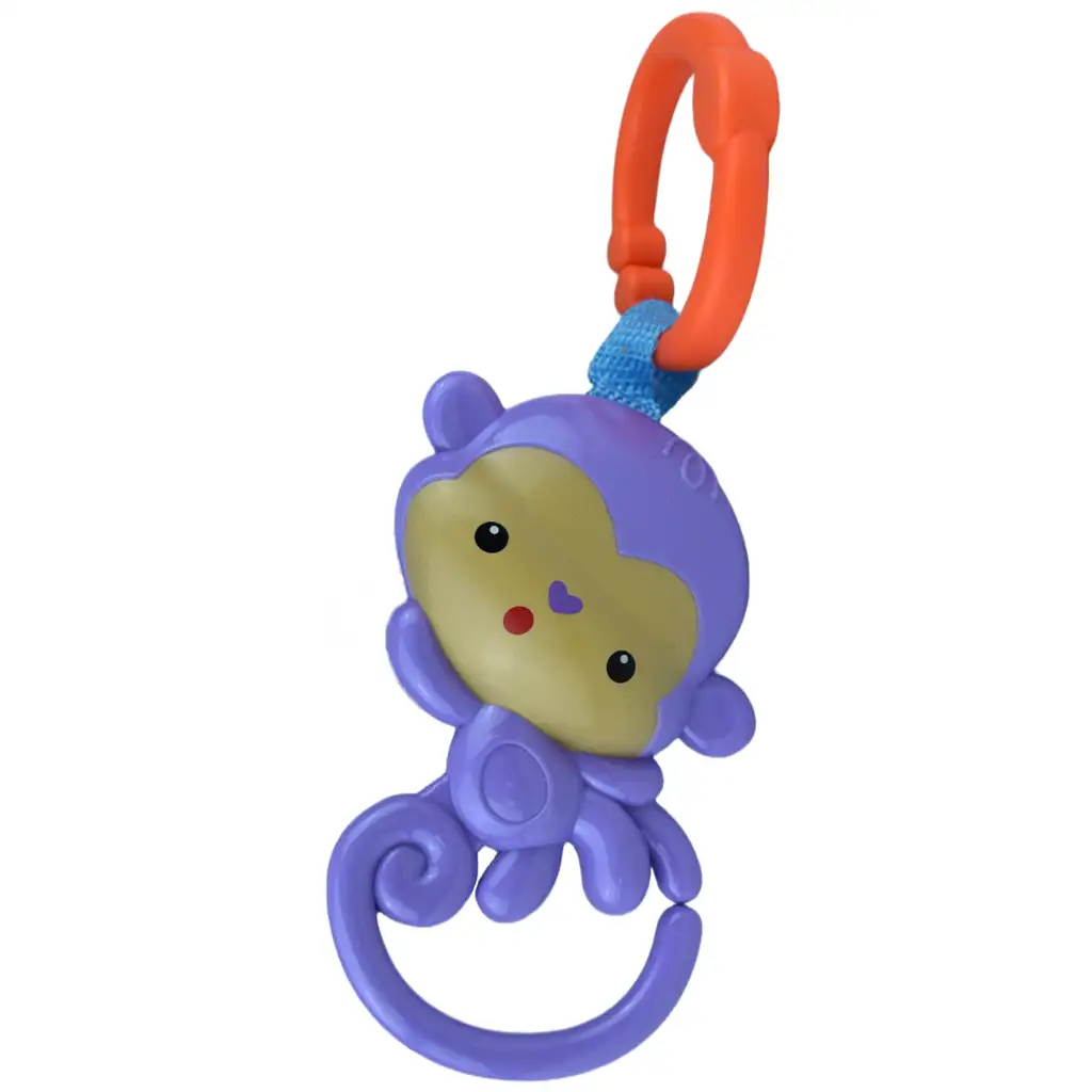 Prinesite veselje igre in zabave v življenje dojenčkov s tem čudovitim vijoličnim opico ropotuljico! Simpatična plastična figura opice ni samo vesela, ampak ima tudi enostavno za obešanje odpirajoč se plastični obroč, ki omogoča, da jo enostavno pritrdite na rob posteljice ali do vozička.