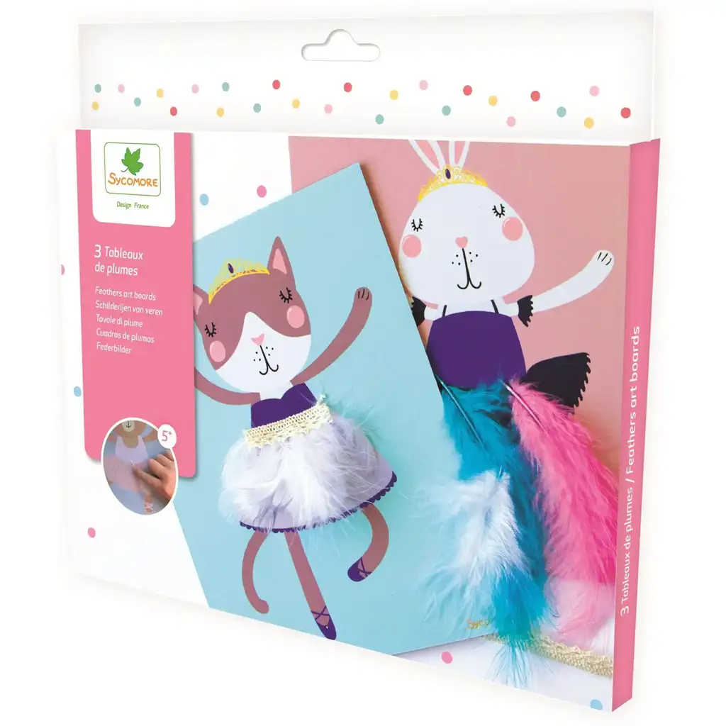 Sycomore ustvarjalni komplet za izdelavo pernatih slik je pravi sanjski komplet za vse male ustvarjalce, ki obožujejo ljubke živalske figure, bleščice in pisana peresa! S tem kompletom oživijo tri očarljive male živalske figure – mačka, zajček in medvedek – v tilskih krilih, z okrasnimi pasovi in mehkimi, pisanimi peresi. Otroci lahko po lastnem okusu okrasijo oblačila figur, tako da nastanejo edinstvene in privlačne slike, ki jih lahko ponosno razstavijo v sobi.
