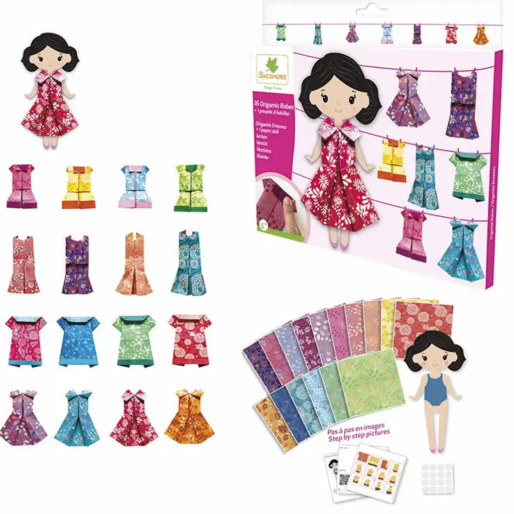 Sycomore Origami Oblačila Kreativni Set je popolna izbira za male ustvarjalce, ki obožujejo drobne umetnine iz papirja, še posebej, če te privedejo do modnih oblačil! S tem kompletom se otroci naučijo osnov origamija, medtem ko zložijo 16 različnih barvitih, vzorčastih oblačil za simpatično papirnato punčko.