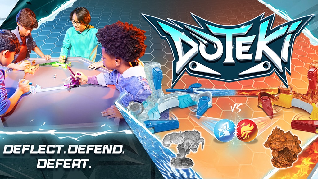 Dōteki je interaktiven, modularen bojni sistem, ki ga je razvilo podjetje TOMY. Ta igra združuje fizično gibanje in strateško razmišljanje, zato ponuja razburljivo izkušnjo za vse starostne skupine. Igralci najprej izberejo frakcijo – lahko se odločijo med Ognjem, Ledom, Zemljo ali Tehnologijo. Nato iz modularnih elementov zgradijo edinstveno areno, ki jo lahko poljubno kombinirajo, tako da je vsak boj drugačen. S pomočjo bojnih krmilnikov lahko igralci sprožijo ali odbijejo ionsko kroglo, medtem ko poskušajo zadeti cilje nasprotnikov in hkrati braniti svoje. Ključi zdravja spremljajo življenjske točke igralcev, in ko ključ izpade, igralec izpade iz dvoboja. Ta sistem zahteva ne le spretnost, temveč tudi hitro razmišljanje in dobro strategijo, zato je vsak spopad razburljiv in raznolik.Dōteki ponuja razburljivo, ročno vodeno igralno izkušnjo, saj v vsaki tekmi združuje gibanje in hitro odločanje. Modularna arena otrokom omogoča, da nenehno preurejajo postavitev igrišča, zato igra ostaja vedno sveža in strateška. Uravnoteženje napada (izstrelitev žoge) in obrambe (zaščita ključa zdravja) prinaša napetost in vložek v vsako tekmo. Ta koncept je enostaven za razumevanje, a izjemno nagrajujoč, saj vsaka igra prinaša nove izzive in priložnosti za igralce. Dōteki ni le zabaven, ampak razvija tudi strateško razmišljanje, hitrost in timsko delo, zato je idealna izbira za vse starosti, ki imajo radi aktivne, ustvarjalne igre.