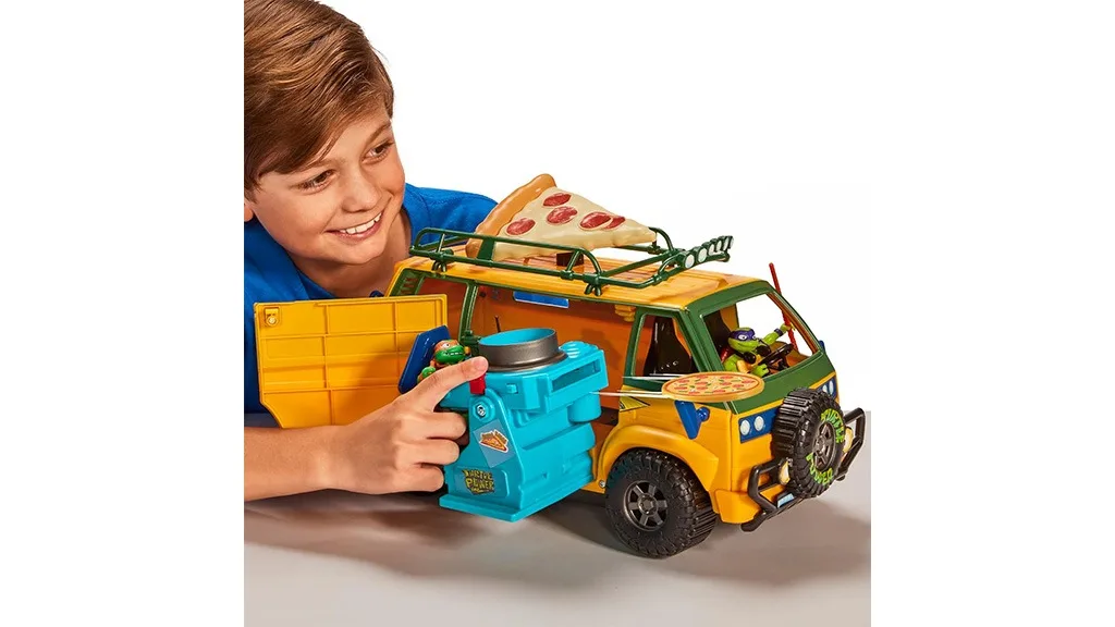 Priporočljivo za otroke, stare 4 leta in več, Pizza Gasilski Dostavni Kombi je skrivno orožje želv proti Superflyju in njegovi zlobni vojski. Kombi je oblikovan tako, kot je prikazan v filmu, od zelene in rumene barve do ročno narisane slike pice na strani. Ko prvič odprete embalažo, je treba sestaviti nekaj ohlapnih delov, zato je nadzor odraslih lahko koristen za mlajše otroke. Mehanizem za izstreljevanje pic zahteva tudi tri baterije AA (niso priložene), tako da lahko odrasli pomagajo pri vstavljanju pred igro.