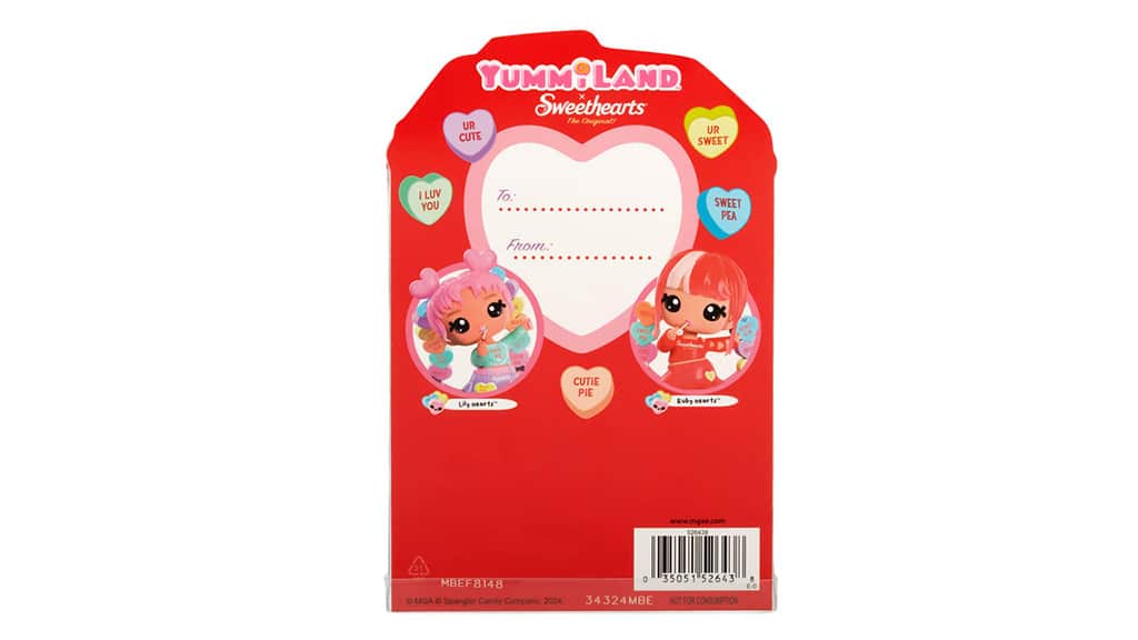 Ti dojenčki so še slajši od ikoničnih srčastih bonbonov! Priljubljene valentinovske dobrote vstopajo v svet Yummiland z dvema omejenima izdajama dojenčkov, ki se ponašajo s pričeskami in oblačili, navdihnjenimi s Sweethearts. Letos na valentinovo lahko otroci rečejo, da bodi moj in sem tvoj dojenčkoma Ruby Hearts in Lily Hearts.