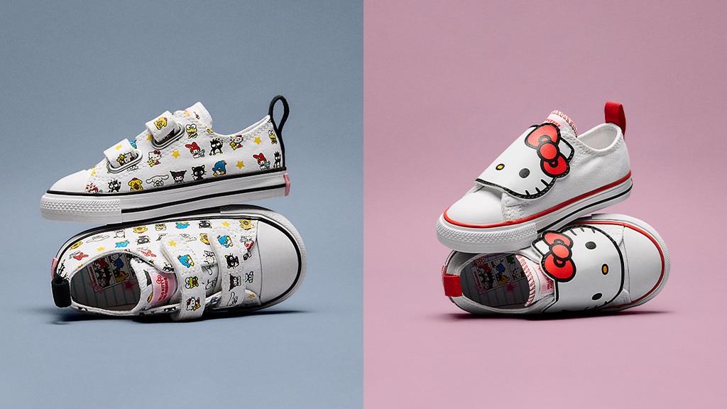 Converse in Sanrio novo sodelovanje prinaša vznemirljivo novost za vsako družino. Kolekcija Hello Kitty in prijatelji s čevlji, oblačili in dodatki praznuje prijateljstvo, zato lahko vsakdo vseh starosti najde popoln kos zase. Kolekcija s svojimi veselimi, pisanimi vzorci in ikoničnimi liki osvoji srca ne le otrok, temveč tudi odraslih. Converse klasični slog združuje s Sanrio prikupnim svetom, zato so nastali resnično edinstveni in posebni izdelki, ki so popolni za skupne družinske aktivnosti, kot darilo ali celo za vsakodnevno nošenje.