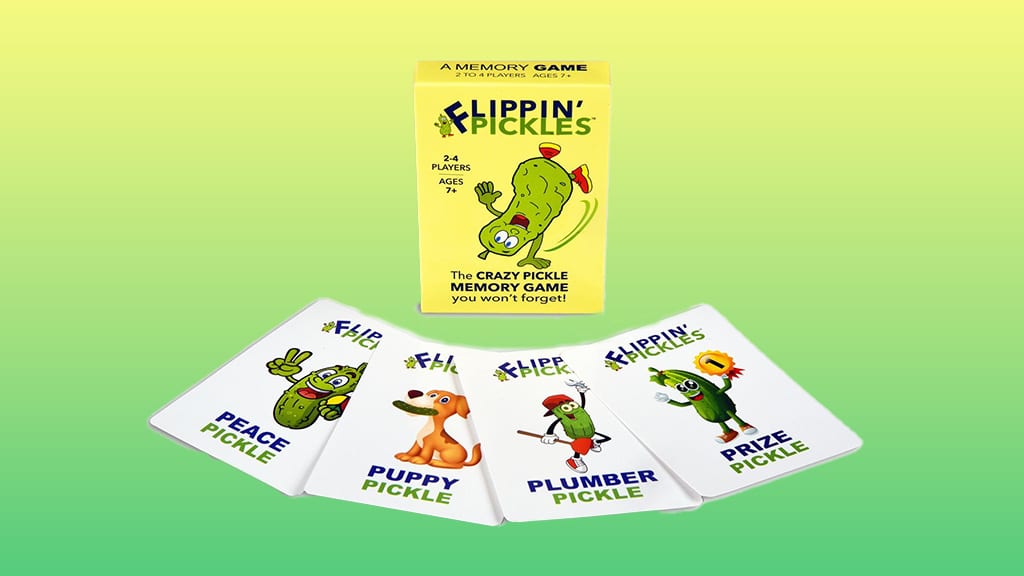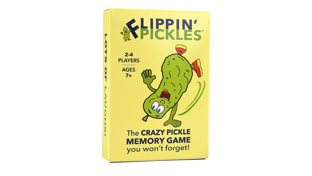 Pickle Everything Games je nova, družini prijazna igra s kartami na temo kumaric z naslovom Flippin’ Pickles! Igralci se izmenjujejo pri obračanju kart, da bi našli popolne pare kumaric, medtem ko skupaj doživljajo vznemirljive in zabavne trenutke. Ta igra zagotovo povezuje družino in spodbuja vse k novim in novim izzivom v parjenju. Flippin’ Pickles ni le odlična zabava za otroke, temveč tudi za odrasle, hkrati pa razvija spomin in pozornost. Pripravi se, da bo tvoja družina s to posebno igro s kartami želela še več veselih iger!To igro so zasnovali za igralce, stare **7 let** in več, in **2-4** pravi ljubitelji kumar lahko uživajo v tej **lahko naučljivi spominski igri**. Otroci morajo ujemati različne karte, na primer **Vodovodar Kumara**, **Nagrajeni Bodeči**, **Kuža Kumara** in še veliko drugih zanimivih likov je v kompletu. Vsi člani družine morajo biti zelo **pozorni**, saj so na nekaterih kartah **majhne razlike**, zaradi katerih pari niso popolnoma enaki. Igralci tekmujejo med seboj, kdo bo osvojil **slano krono** in postal **Glavna Kumara**! Ta igra ni le zabavna, ampak razvija tudi **spomin**, **opazovalne sposobnosti** in **koncentracijo**, zato je odlična izbira za družinska ali prijateljska srečanja.