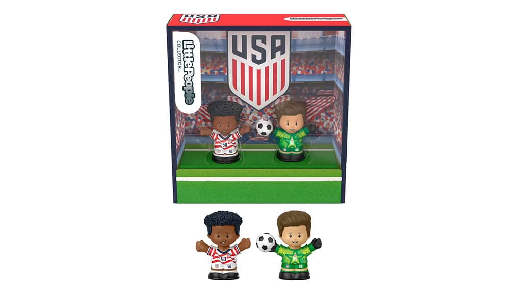 Zvezda te serije je komplet Fisher-Price Little People Collector, ki vsebuje dve figuri, oblečeni v uradni dres ameriške nogometne reprezentance. Te podrobno izdelane, kakovostne figure niso zabavne le za otroke, temveč lahko zavzamejo posebno mesto tudi na policah zbirateljev. Fisher-Price je blagovna znamka, znana po tem, da so njene igrače varne, trpežne in ponujajo ustvarjalno igralno izkušnjo za vse starosti. Ta komplet je popolno darilo za vsakega otroka ali zbiratelja, ki obožuje nogomet in ima rad edinstvene, tematske igrače.