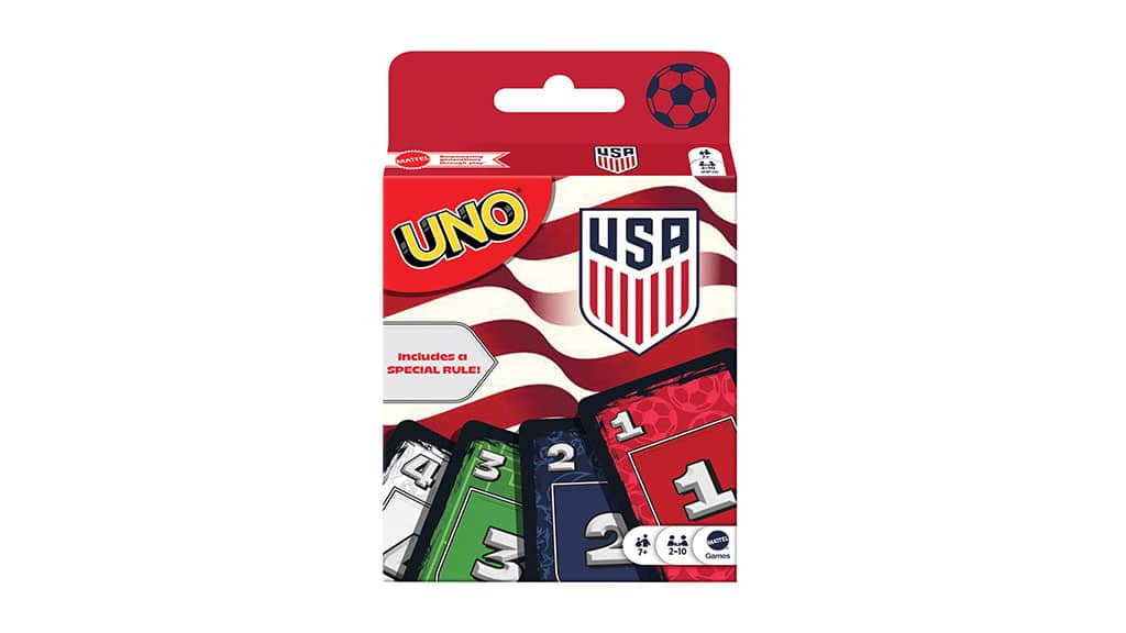 Mattel razširja tekmovalni duh tudi na družinske igralne večere s kompletom UNO U.S. Men’s National Team, vendar bodite pozorni na kazenske karte! Ikonična igra ponuja posebno igralno izkušnjo z novo pravilo »Rumeni in Rdeči karton«, ki nekatere karte spremeni v kazen. Ta novost naredi igro še bolj razburljivo in polno preobratov, tako da lahko vsak družinski član doživi vznemirjenje tekmovanja, medtem ko se skupaj zabavate.
