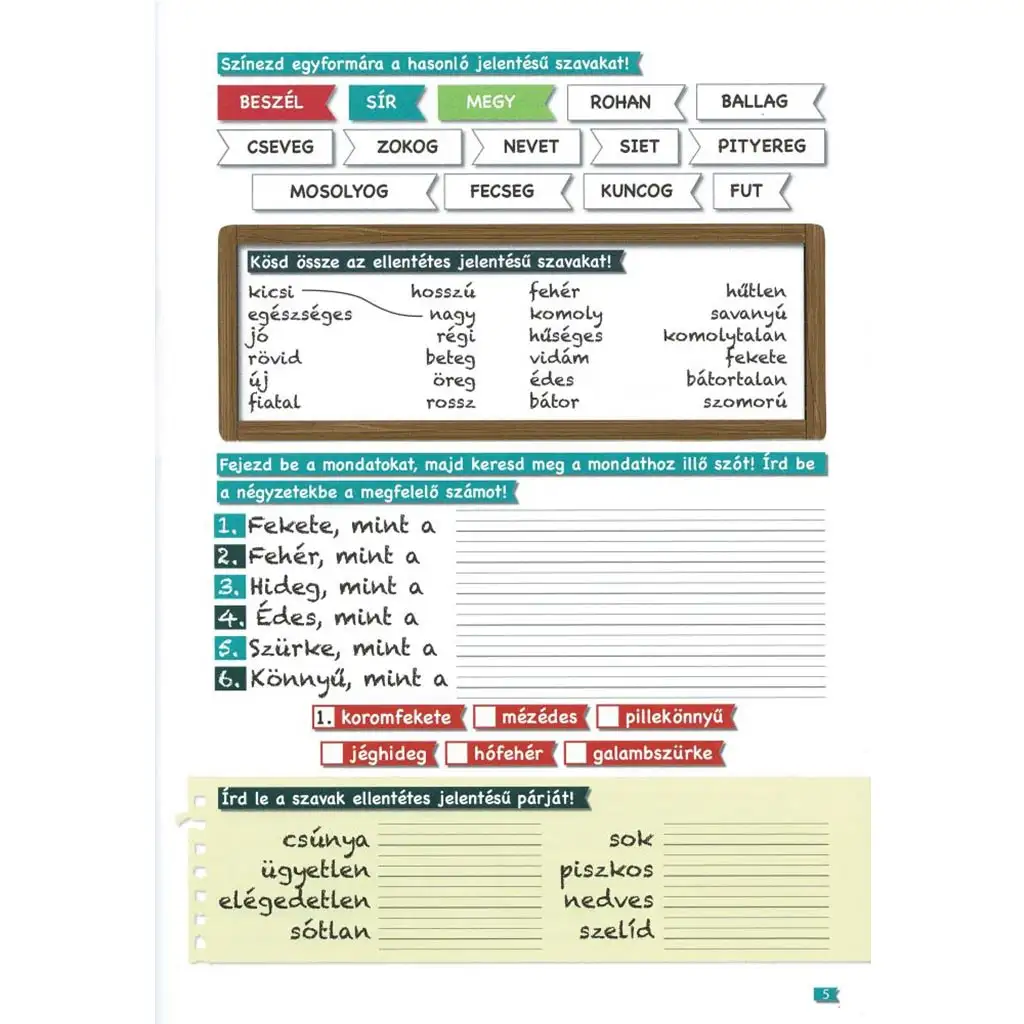 V tej delovni zvezek čaka veliko nalog za drugošolce, ki lahko med poletnimi počitnicami vadijo naučeno, poleg tega pa lahko opravijo tudi nove naloge, če se s takšnimi srečajo. Ta 48-stranski zvezek vsebuje številne naloge tako iz madžarskega jezika kot iz matematike, s pomočjo katerih se lahko drugošolci veliko razvijajo. S tem lahko spoznavajo nove besede, rešujejo logične naloge, pri matematiki pa vadijo osnovne računske operacije. Ta zvezek daje učencem možnost, da delajo v svojem tempu, kar pomaga pri boljšem razumevanju učne snovi in utrjevanju naučenega. Z reševanjem nalog otroci razvijajo svoje sposobnosti reševanja problemov, logično razmišljanje in samostojnost.