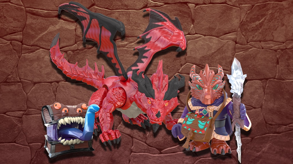 Otroci lahko odkrijejo bogato pripovedovanje zgodb D&D skozi like, ki jih navdihujejo legendarna bitja, kot so mimiki, zmaji in škrati. Vsaka skrivnostna, zbirateljska figura predstavlja lik iz ene od treh kategorij: Bitja, Pustolovci ali Pošasti. Vse figure so popolnoma sestavljive in vsebujejo zamenljive dele, tako da lahko zbiratelji prosto mešajo, kombinirajo in prilagajajo svoje junake in pošasti.