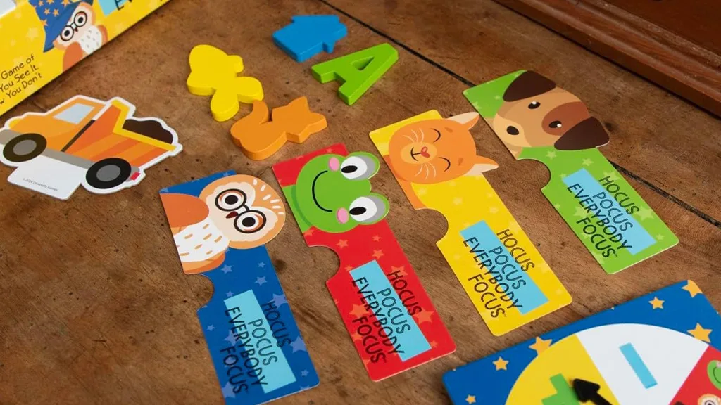 Ta igra vabi igralce, da si nadenejo masko in poskusijo obnoviti, katere otipljive ali ploščate predmete so odstranili ali dodali k igralnemu prostoru. Namen igre je spodbuditi otroke k uporabi njihovega spomina in prostorske orientacije.Na koncu je Hocus Pocus, Everybody Focus igra spomina, v kateri vsak otrok nosi masko in mora s pomočjo dotika ugotoviti, katere predmete so dodali ali odstranili z igralnega območja.