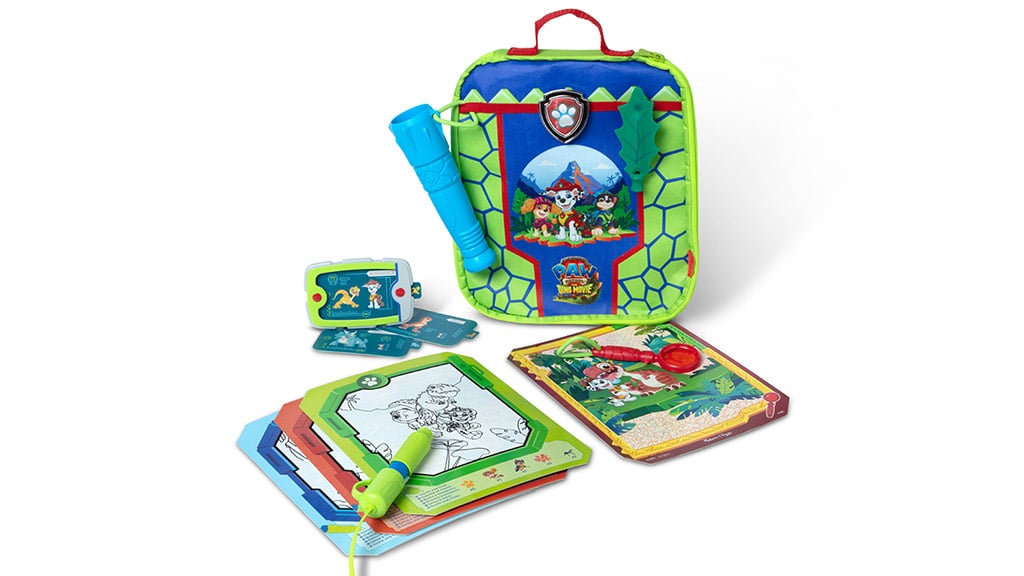 Pripovedovanje zgodb se ne ustavi pri zaslonu! Otroci lahko ustvarijo svoje lastne dinozavrske pustolovščine z novo igro vlog Melissa & Doug. Ta celoviti komplet ponuja številne domiselne Tačke na patrulji aktivnosti – na primer strani za iskanje, dvostranske misijske kartice, kartice z dejstvi o dinozavrih ter brezneredne barvne liste Water WOW!. Poleg tega so v kompletu tudi piščalka, daljnogled, priponka Mancs őrjárat in drugi dodatki. Otroci lahko zabavo vzamejo s seboj tudi na pot v torbi s temo dinozavrov.