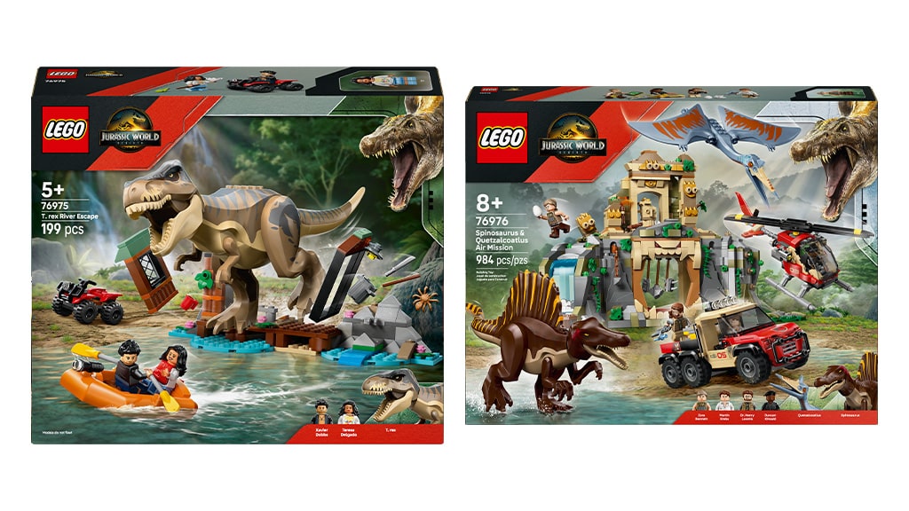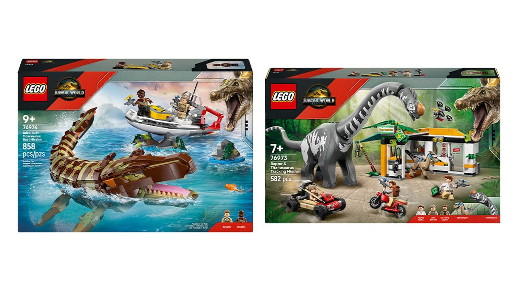 Družine lahko od 1. julija kupijo šest novih LEGO kompletov v LEGO trgovinah, pri izbranih trgovcih na drobno in na uradni spletni strani LEGO. Graditelji, stari 5 let in več, lahko na LEGO spletni strani odkrijejo tudi dodatne komplete Jurassic World in Jurassic Park. Oglejte si spodnji napovednik, da ugotovite, katere dinozavre lahko zgradite!