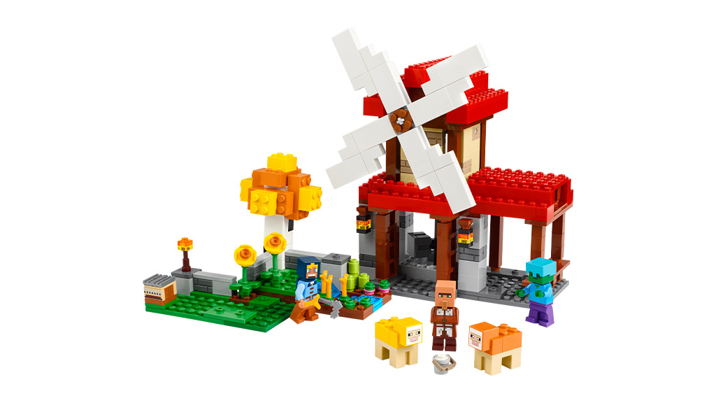 Mlin na veter Farm obsega 461 kosov in vključuje delujoč mlin na veter, vrteči se mlinski kamen, kruh, pecivo, pastirja, ovce, statve in še veliko več. Badlands Rudarski Set obsega 538 kosov in vključuje rudniški voziček, TNT, osla, raziskovalno bazo, Creeperja in še veliko več. Nazadnje, Ender Zmaj in End Ladja obsega 657 kosov in vključuje delujočo notranjost ladje, sestavljivega Ender Zmaja, Ender viteza in še veliko več.
