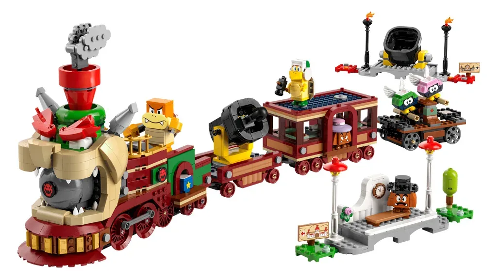 Tri LEGO kompleti, ki se pridružujejo vesolju LEGO Super Mario, so Bowserjev Ekspresni Vlak, King Boo Duhovski Grad in Bitka z Royem v Peach Gradu.Bowser Expressz Vonat vsebuje 1,392 LEGO kock, in ima interaktivne funkcije, kot so ročno upravljana vrtljiva platforma, Super Star Blok, potniški vagon z odstranljivo streho in "?" Blok, ter vagon za spanje z vzmetno posteljo.