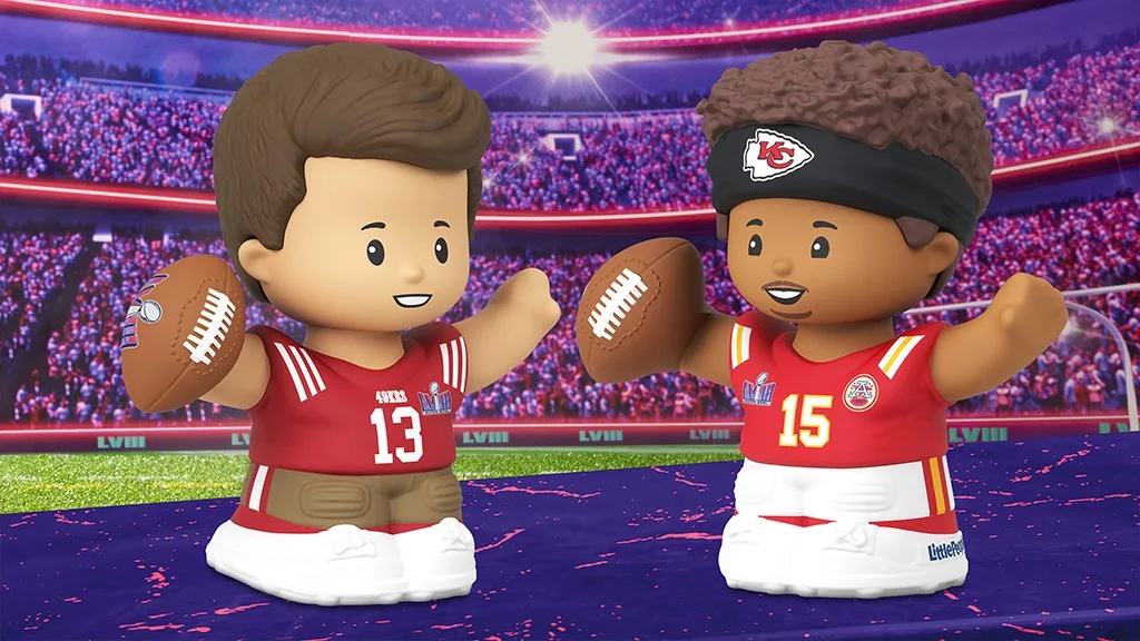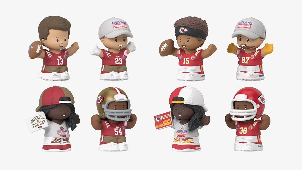Prve Barbie NFL Super Bowl prvak lutke so popolnoma oblečene v navijaško opremo ekip, vključno s šalom, dresi in kapami Super Bowl LVIII. Kompleti Fisher-Price Little People Collector Super Bowl vključujejo tri figure letošnjih NFL prvakov in tudi enega navijača.