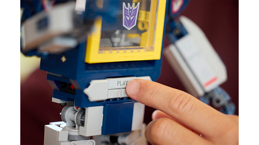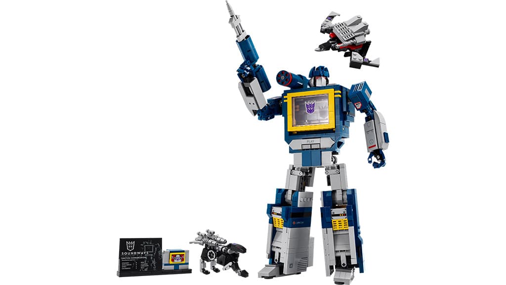 Družine se lahko podajo v nove, vznemirljive gradbene izkušnje z modelom Soundwave iz LEGO kock. Ta figura Decepticon, sestavljena iz 1505 delov, ima gibljive sklepe, delujoč kasetni predal in omogoča gladko preobrazbo med načinom robota in kasete. Če želijo otroci slišati Soundwaveov glas med delovanjem, morajo le pritisniti gumb za predvajanje in že lahko poslušajo posebej posnete zvoke in zvočne učinke. Ta komplet ne le spodbuja ustvarjalnost, ampak ponuja tudi skupno družinsko zabavo, medtem ko otroci in odrasli skupaj odkrivajo svet Transformers in veselje do LEGO gradnje.