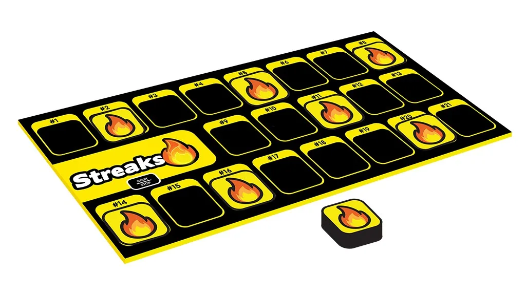 Ker igra vsebuje 130 pravilnih kart, nikoli ne igrate dvakrat iste igre, kar je odlična izbira za druženja iz omare. Dodajanje Streaks k večerom družabnih iger zagotovo vname zabavo!