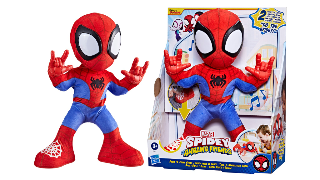 Letos poleti lahko starši dodajo Plesnega in plezalnega Spideyja v zbirko igrač. Otroci lahko plešejo z 25 cm visokim interaktivnim plišastim Spideyjem in slišijo zabavne izraze, kot so "Naredimo Spidey ples!" in "Pojdi, mreže, pojdi!", ter super pesmi. Skupaj vsebuje 20 izrazov in zvokov ter dve pesmi, ki jih otroci prepoznajo iz oddaje! Če otroci potrebujejo malo spodbude, lahko plešejo ob glasbenem videu "Naredimo Spideyja!", ki bo debitiral to poletje.