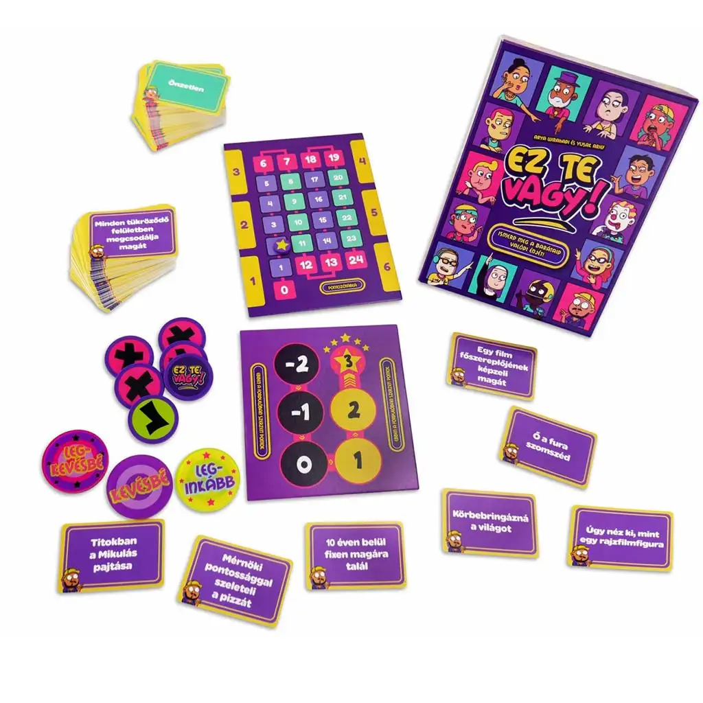 Ez si ti! je dinamična zabavna igra, polna smeha in presenečenj, v kateri boste ugotovili, kako dobro se v resnici poznate – in tudi, ali vas drugi vidijo tako, kot vi dojemate sami sebe. Med igro je vedno en pomagač, ki na skrivaj izbere značilnost s kart na mizi, nato pa s pomočjo označevalcev »najbolj«, »bolj/manj« ali »najmanj« poskuša usmeriti ostale igralce k pravilnemu odgovoru. Označevalce lahko postavite tudi nase, kar pogosto vodi še do bolj zabavnih situacij. Nato skupaj previdno izločate značilnosti in hkrati poskušate zbrati čim več točk, ne da bi po nesreči izločili iskano trditev. Na koncu igre vam točkovna tabla pokaže, kako uigrani ste kot skupina. Izzivalne in duhovite karte odpirajo nova vprašanja, spodbujajo pripovedovanje zgodb in zagotovo popestrijo družinski večer ali srečanje s prijatelji.