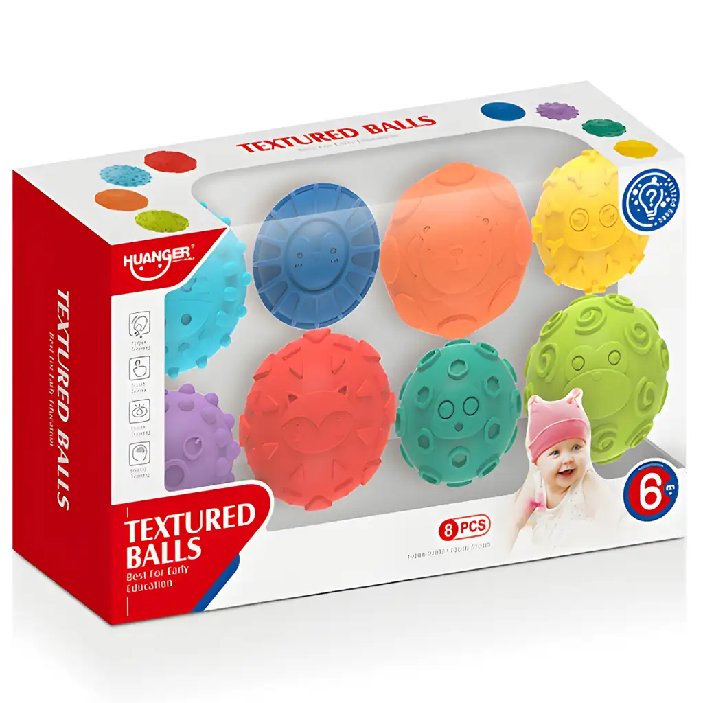 Ta komplet ne nudi le zabavne igralne izkušnje, ampak tudi pomaga otroku razvijati fine motorične sposobnosti in čutila. Različne teksture in oblike žog pomagajo pri razvoju občutka za dotik in občutljivosti, medtem ko otrok odkriva in dojema različne teksture in vzorce.