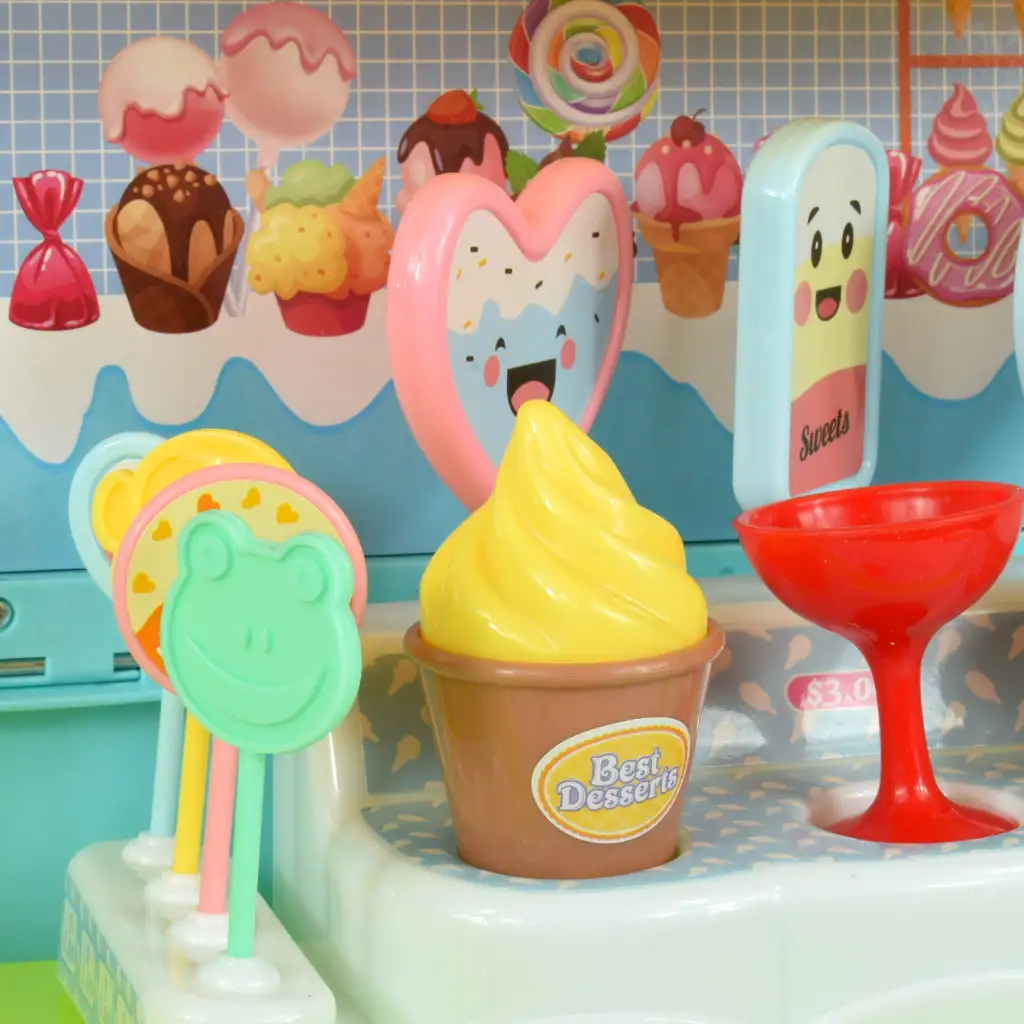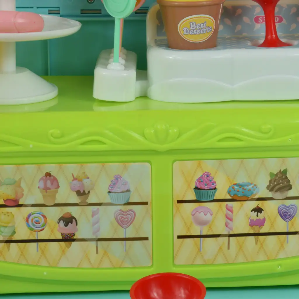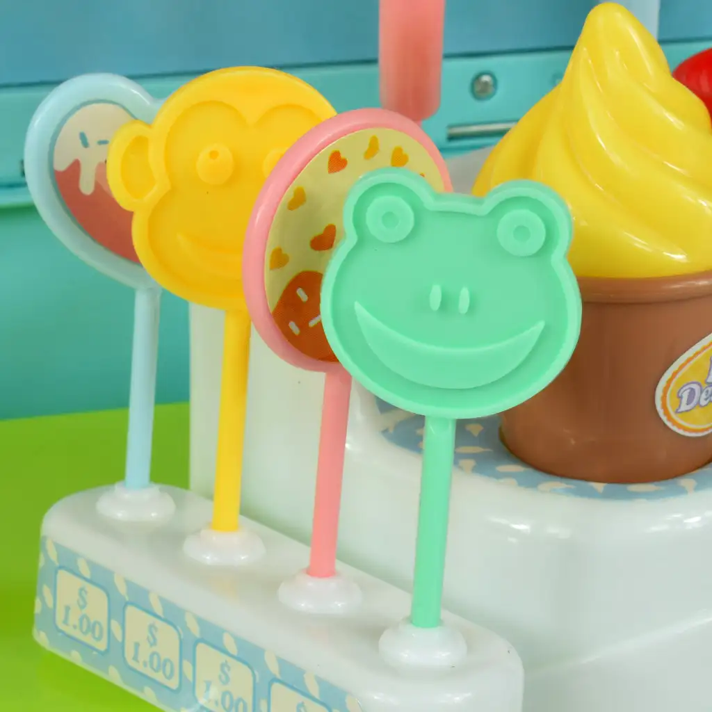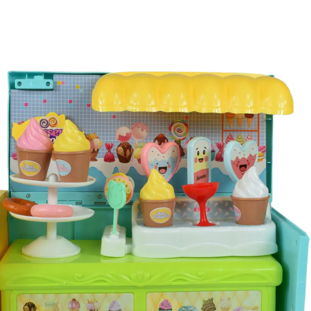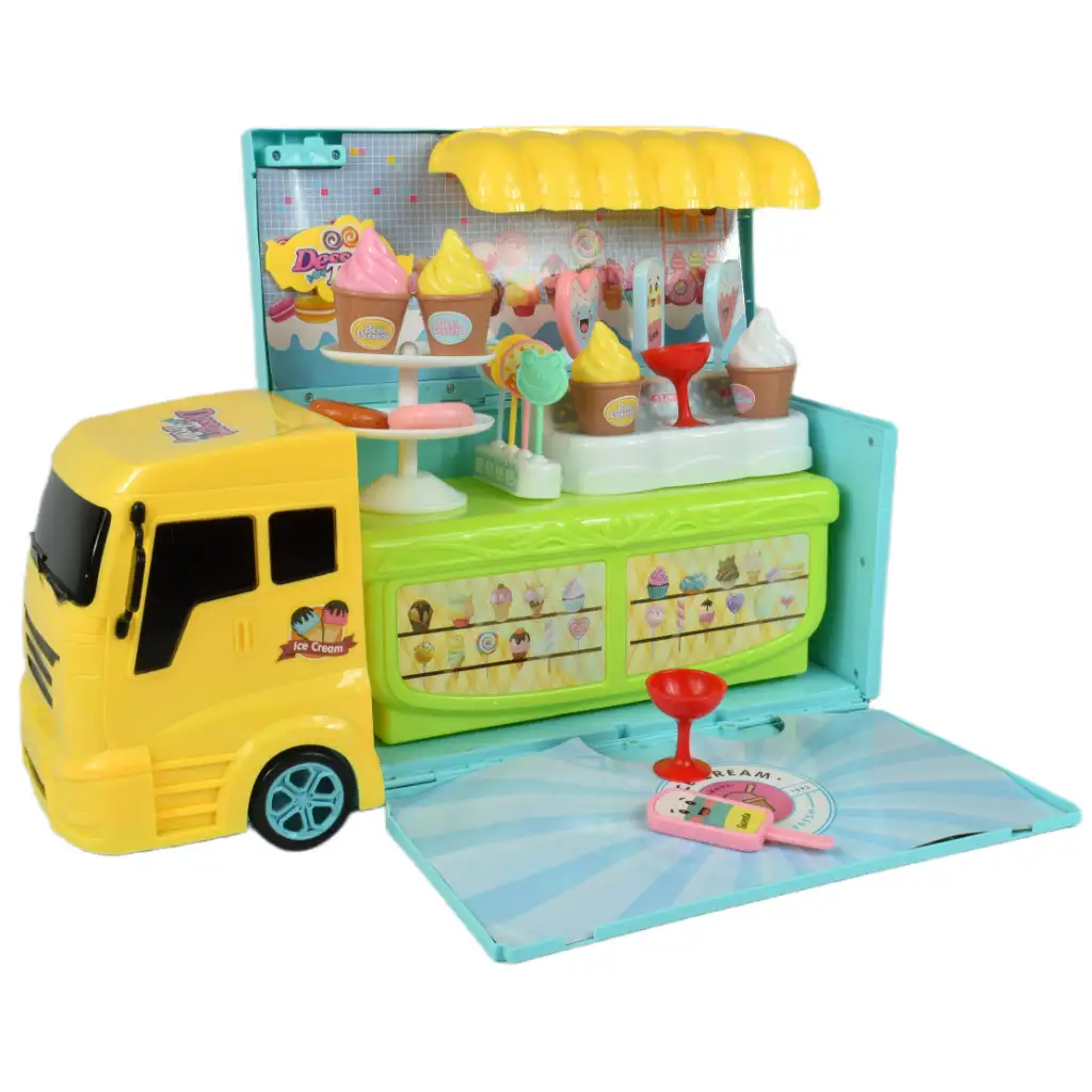 Pravo presenečenje pa pride, ko odpremo tovornjakov prtljažnik. Za okni se razkrije osupljiv slaščičarski pult, na katerem so razvrščene dobrote, pripravljene, da postanejo sladice, ki si jih otroci predstavljajo. V avtu so tudi sladoledi, lučke in lizike, zato imajo otroci neskončne možnosti za ustvarjalno igro in pripravo svojih poslastic.