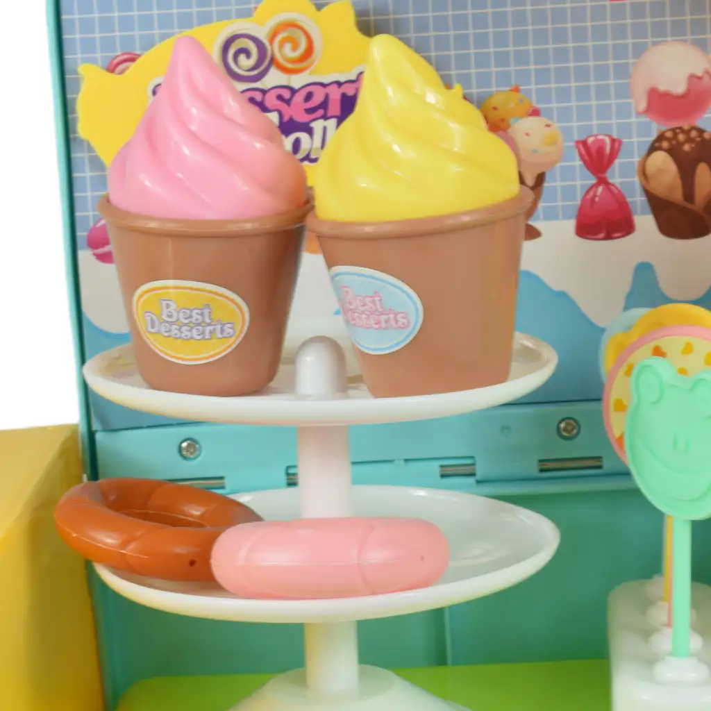 Ta 2-v-1 desertni igralni set je resnično osupljiv in vsestranski. Poleg funkcije prtljažnika in slaščičarskega pulta je del tudi drugih dodatkov, ki igro naredijo še bolj barvito in vznemirljivo. Otroška domišljija je edina omejitev za doživetja, ki jih ustvarjajo s to zabavno in interaktivno igro.
