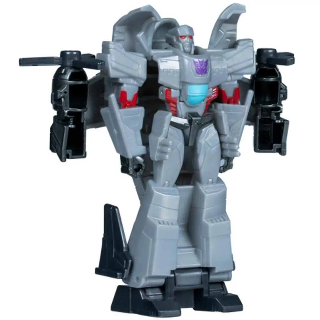 Stopi v akcijo z enim najbolj ikoničnih likov sveta Transformerjev – Megatronom, ki zdaj prihaja v povsem novi podobi, navdihnjeni z animirano serijo Transformers: EarthSpark! Ta 10 cm visok lik se lahko v hipu preoblikuje iz letala v robota – potreben je le rahel pritisk in že je pripravljen na akcijo. Tudi spreminjanje nazaj je otročje lahko: z eno potezo ga lahko zložiš nazaj v način letala, tako da lahko izkušnjo Transformerjev znova in znova doživljaš.