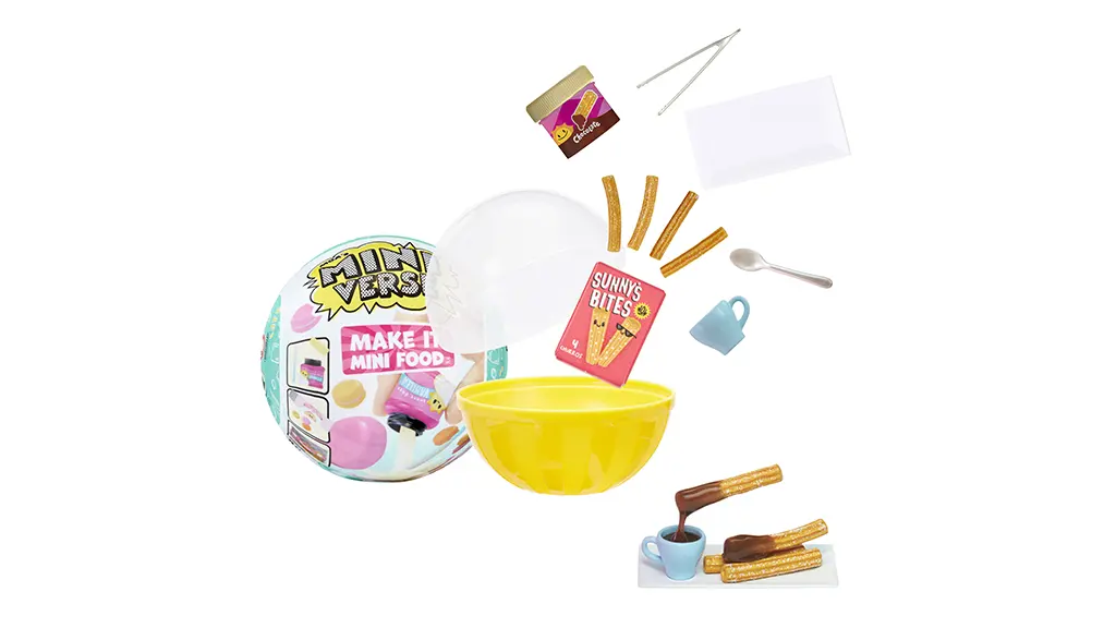 Otroci lahko odprejo presenečenje embalažo, da razkrijejo vse potrebne sestavine za ustvarjanje miniaturne, hrane tematske zbirke. Komplet vključuje tudi miniaturne kuhinjske dodatke in recept kartico.Zbirate lahko več kot 90 miniaturiziranih priljubljenih znamk, vključno z redkimi presenečenji. Odkrijte ikonične znamke, kot so Campbells, Tabasco, Post-It, Maruchan in še veliko drugih. Kapsule Mini Brands so zdaj izdelane iz certificiranega recikliranega plastike.