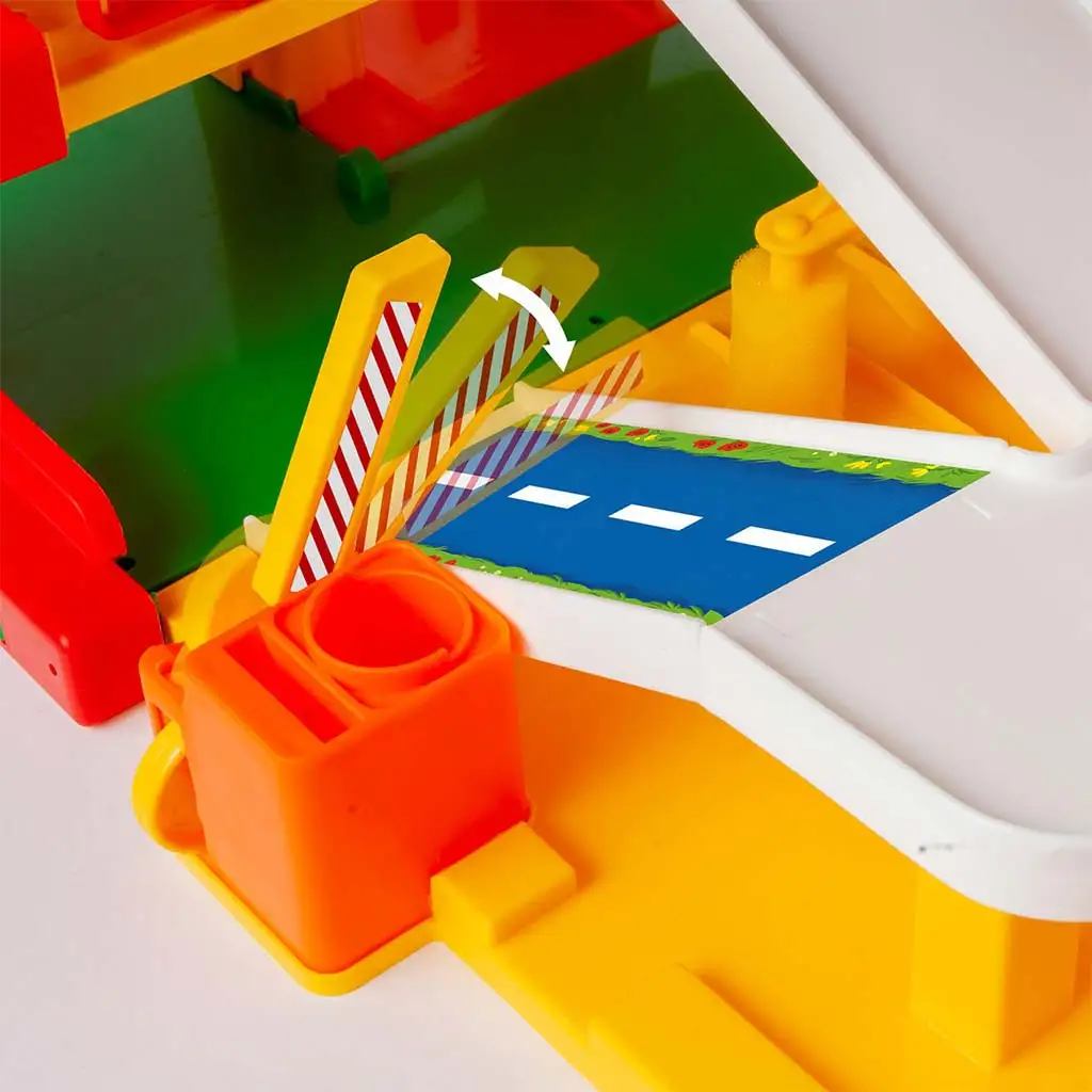 Tronadstropna servisna garaža s cesto in dodatki je razburljiv, podrobno izdelan igralni set, ki pričara prave mestne pustolovščine v otroško sobo. Barvita, robustno zasnovana garaža ponuja odkrivanje na treh nivojih: parkirna mesta, servisni oddelek in avtopralnica, tako da se lahko mali avtomobili popolnoma "postrežejo".