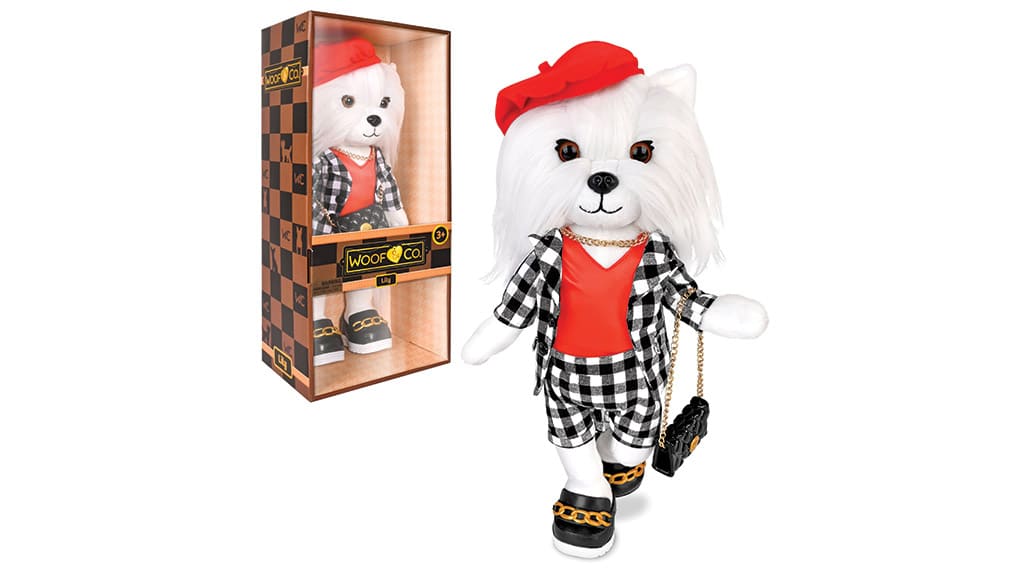 Lily vsem svojim dejavnostim doda pariško eleganco! Ta 15-palčni, premični plišasti Shih Tzu nosi edinstveno rdečo baretko, stilsko črno-belo obleko ter ujemajočo se torbico in čevlje. Obožuje oblikovati oblačila, ki poudarjajo osebnost njenih prijateljev. Lilyjina ustvarjalnost in prefinjen okus navdušujeta vse, vedno poskrbi, da se ljudje okoli nje počutijo posebne. Njena strast do mode navdihuje prijatelje, da pogumno izrazijo svoj slog.