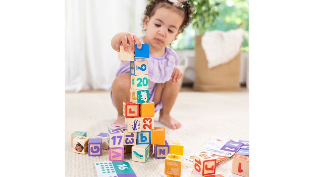Ta komplet vsebuje 26 reliefnih blokov in 14 dvostranskih kartic z dejavnostmi, ki jih je navdihnila gospa Rachel. Bloki vključujejo črke, številke, slike, barve, živali, dele telesa, čustva in gibe. Kartice z dejavnostmi vsebujejo vaje za ujemanje in štetje, ideje za igre, informacije o razvojnih veščinah in nasvete za odrasle. Vse to je shranjeno v prenosni škatli.
